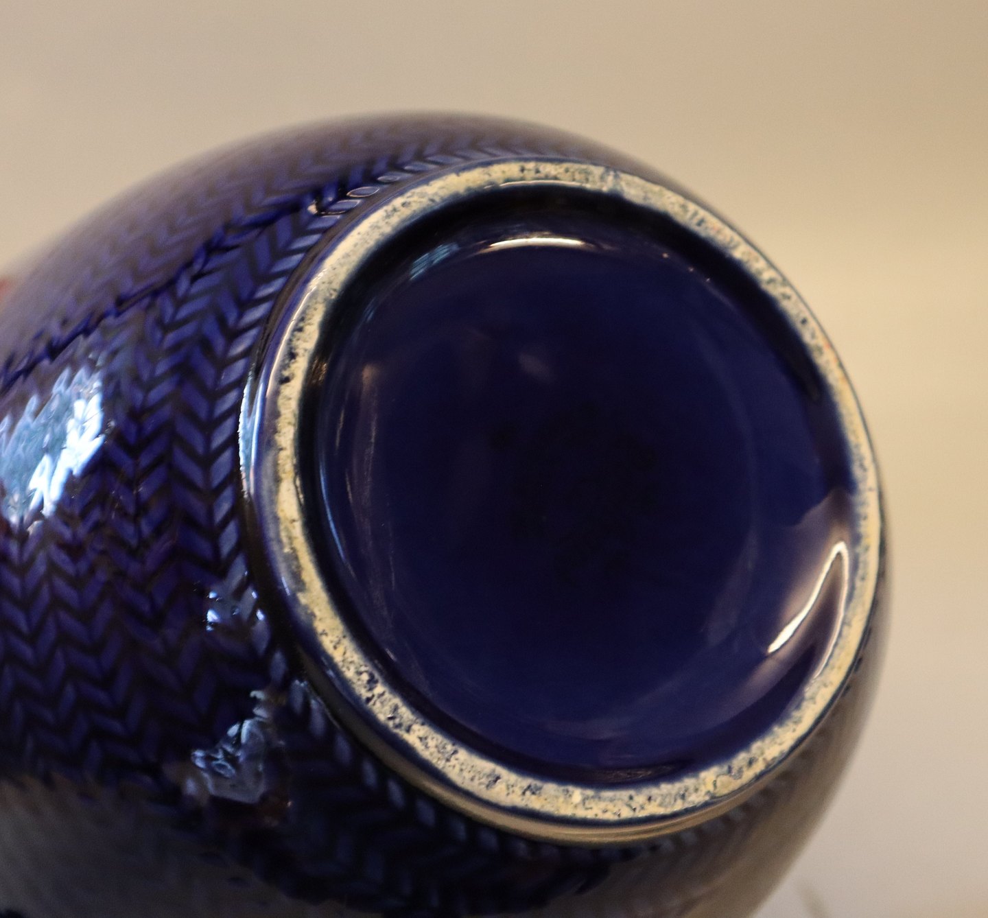 Skål med hanke 17 x 25 cm Vinkøler - Potteskjuler Blå Eld / Blå Ild design Hertha Bengtsson Rörstrand, Sverige, 1950 - 1971