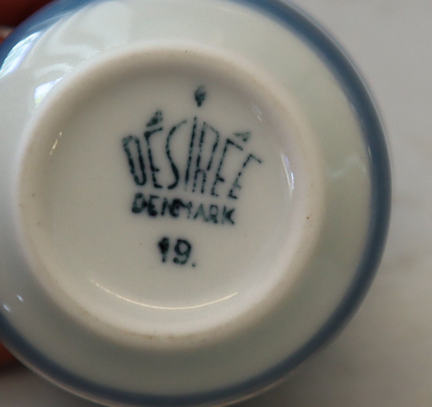 Æggebæger 4.5 cm Mistelten. Desiree Stellets runde former er dækket med en silkeblød glasur og håndmalet med er lys almueblå farve lagt under glasuren.