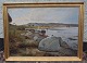 Beskrivelse: Færgehagen ved Mariagerfjord 1952 Stort Maleri af Gunnar Bundgaard 112 x 153 Cm med Guldramme