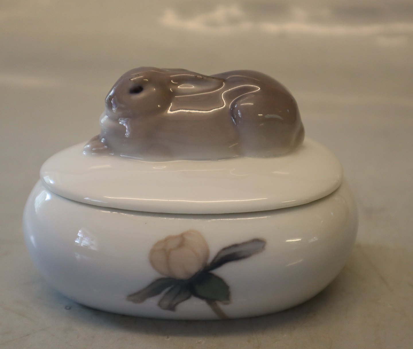 Beskrivelse: 1614-1337 Kgl. Harer på boks 7.5 x 11.5 cm pre 1923 fra Royal Copenhagen I hel og fin stand