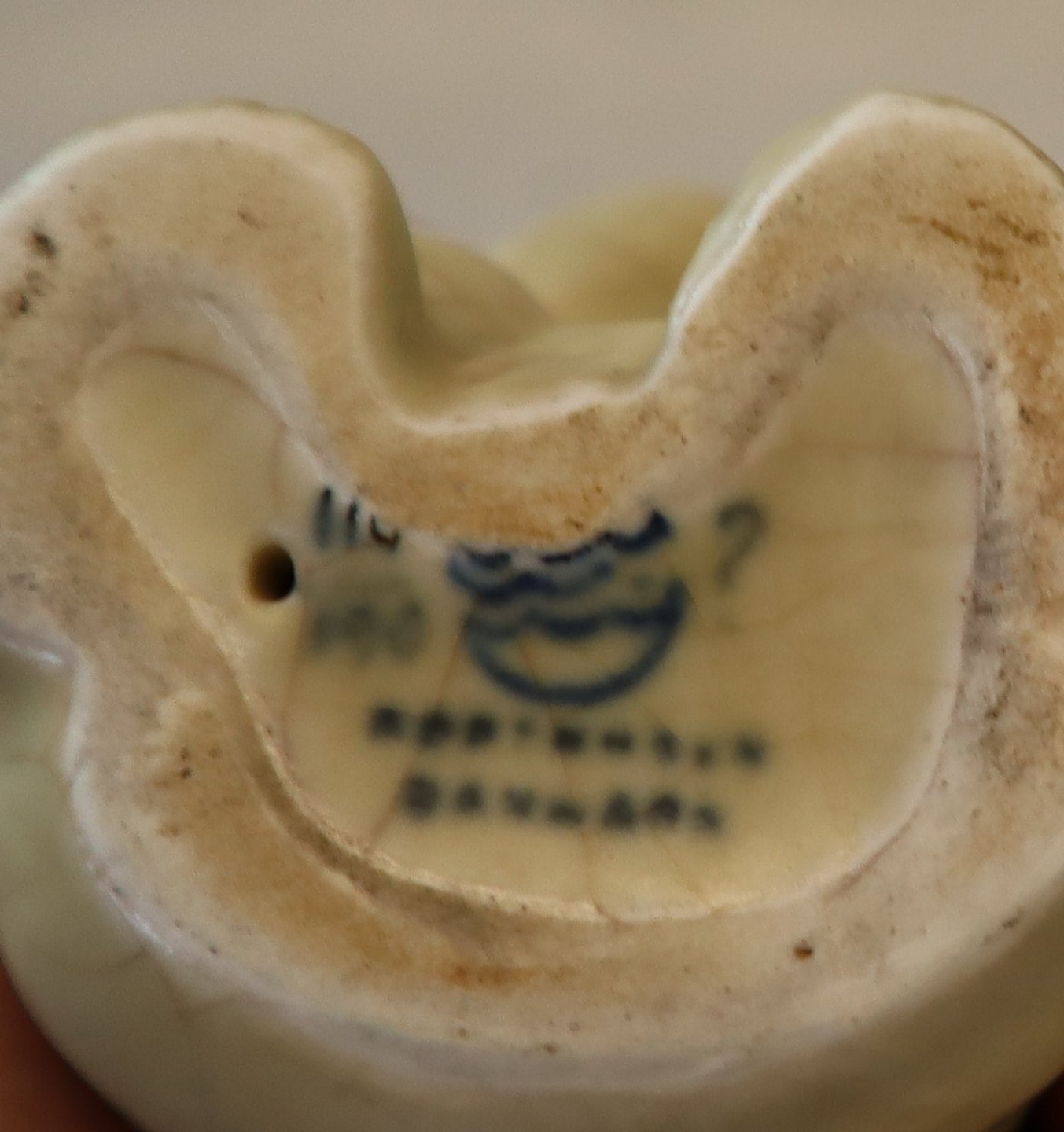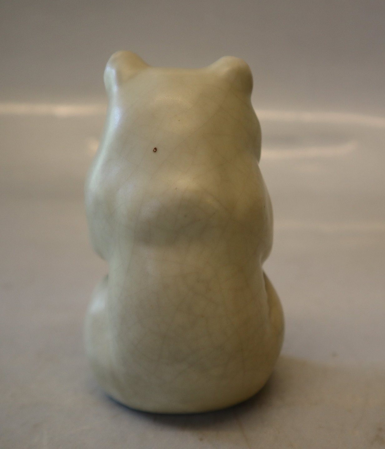 Beskrivelse: Aluminia Mat Porcelæn (Blødt porcelæn med mat glasur) RC 21435 Siddende bjøneunge 8,5 cm (1 049 235) Knud Kyhn I fin og hel stand