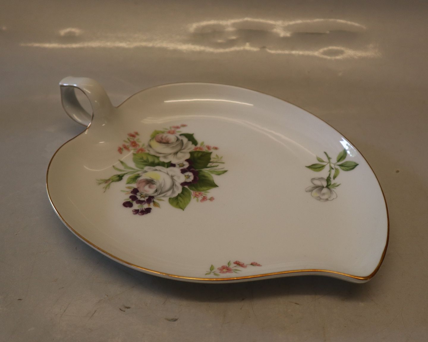 Hvidt porcelæn med guldkant. Decor: Hvid vild rose og violer. form 676 I fin og hel stand.