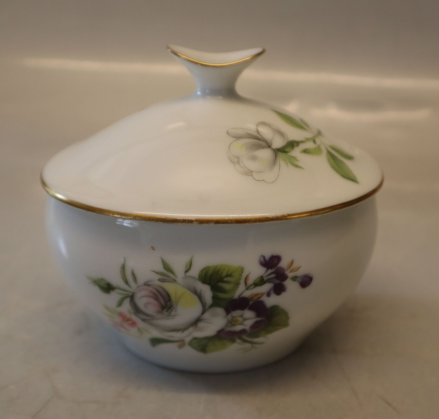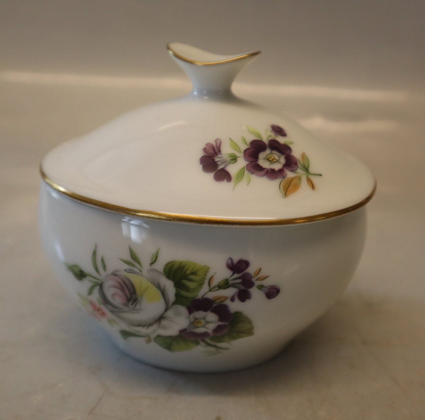 Hvidt porcelæn med guldkant. Decor: Hvid vild rose og violer. form 676 I fin og hel stand.