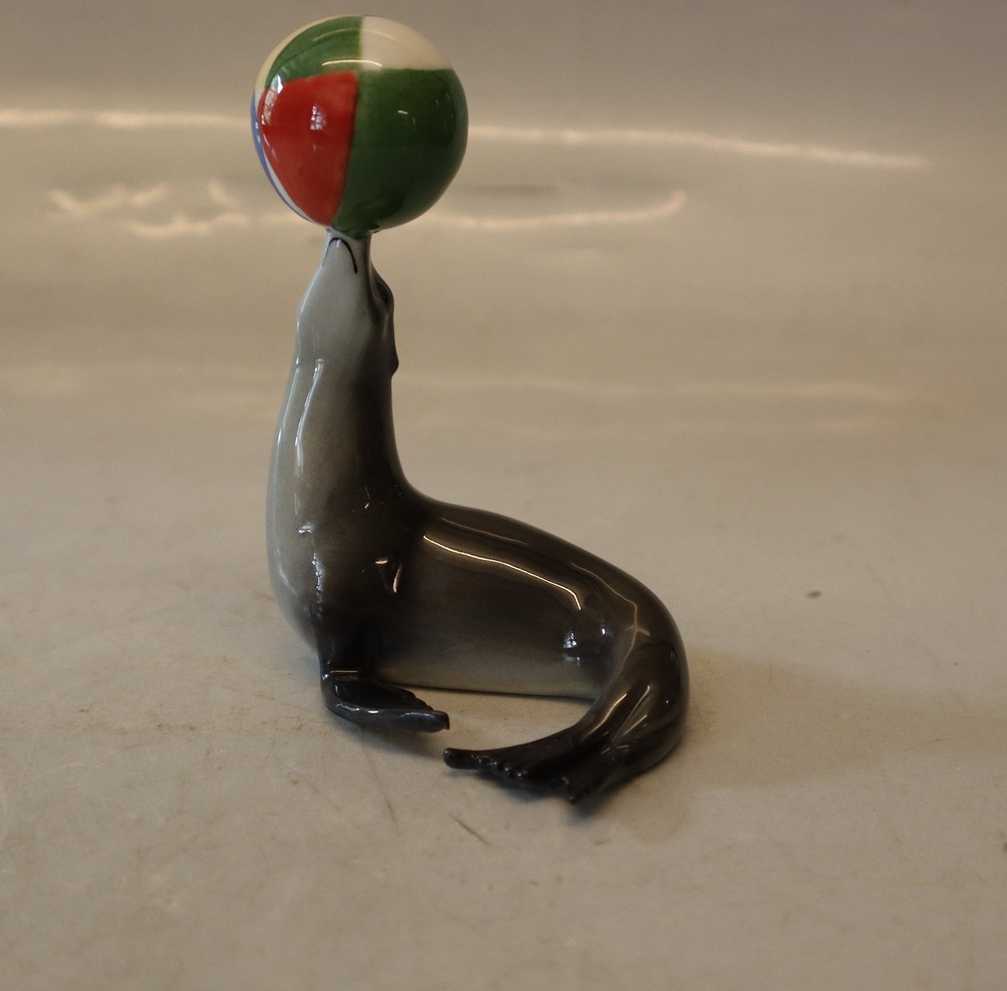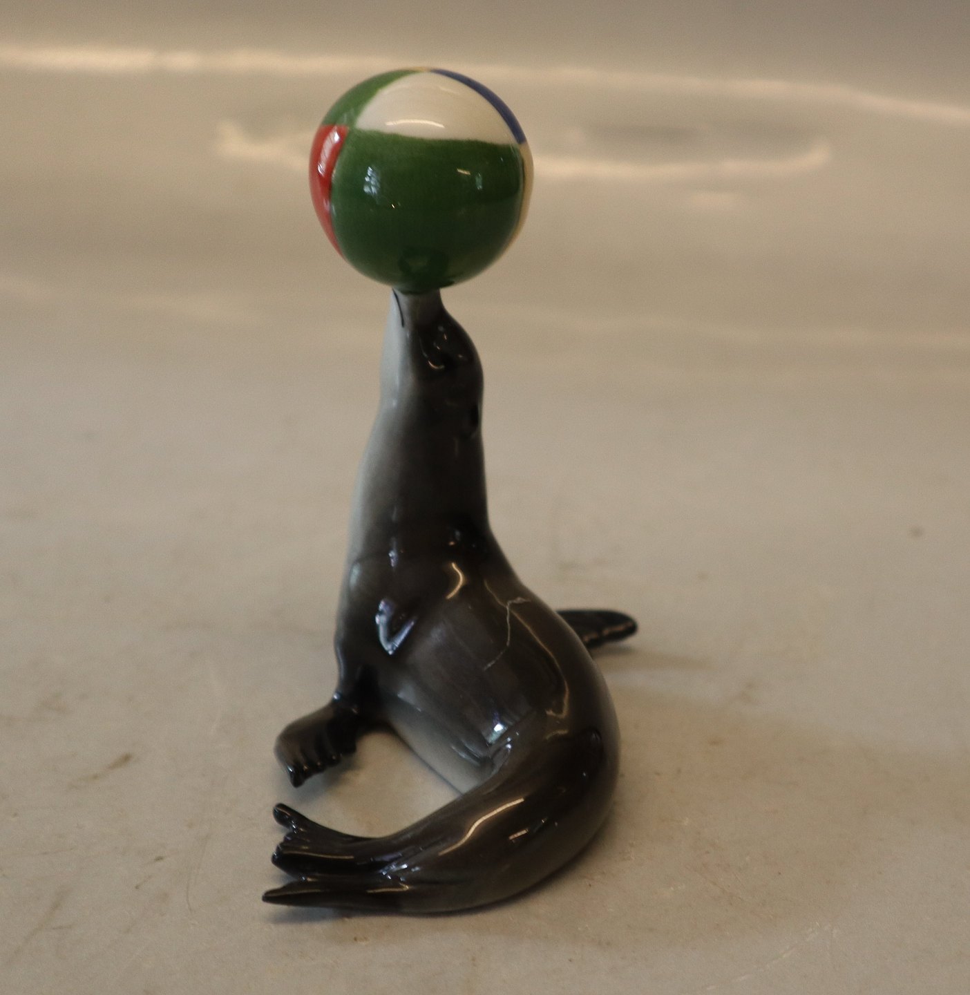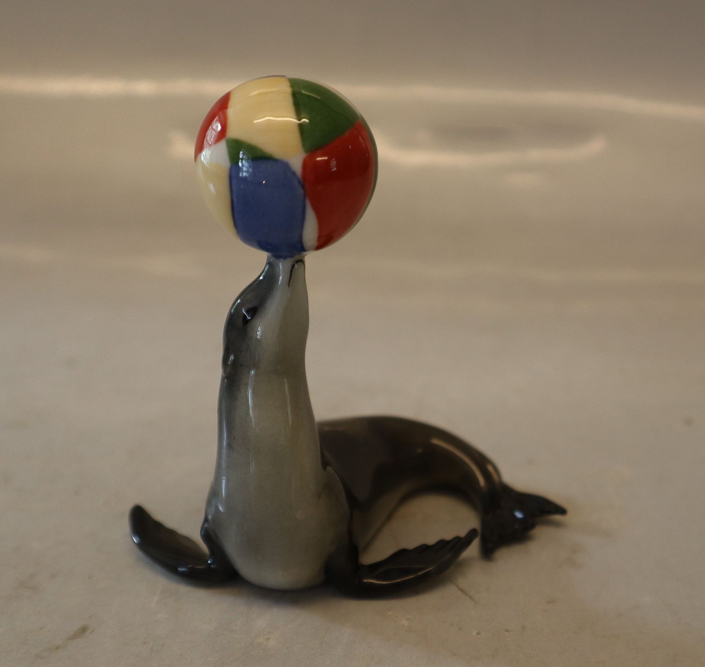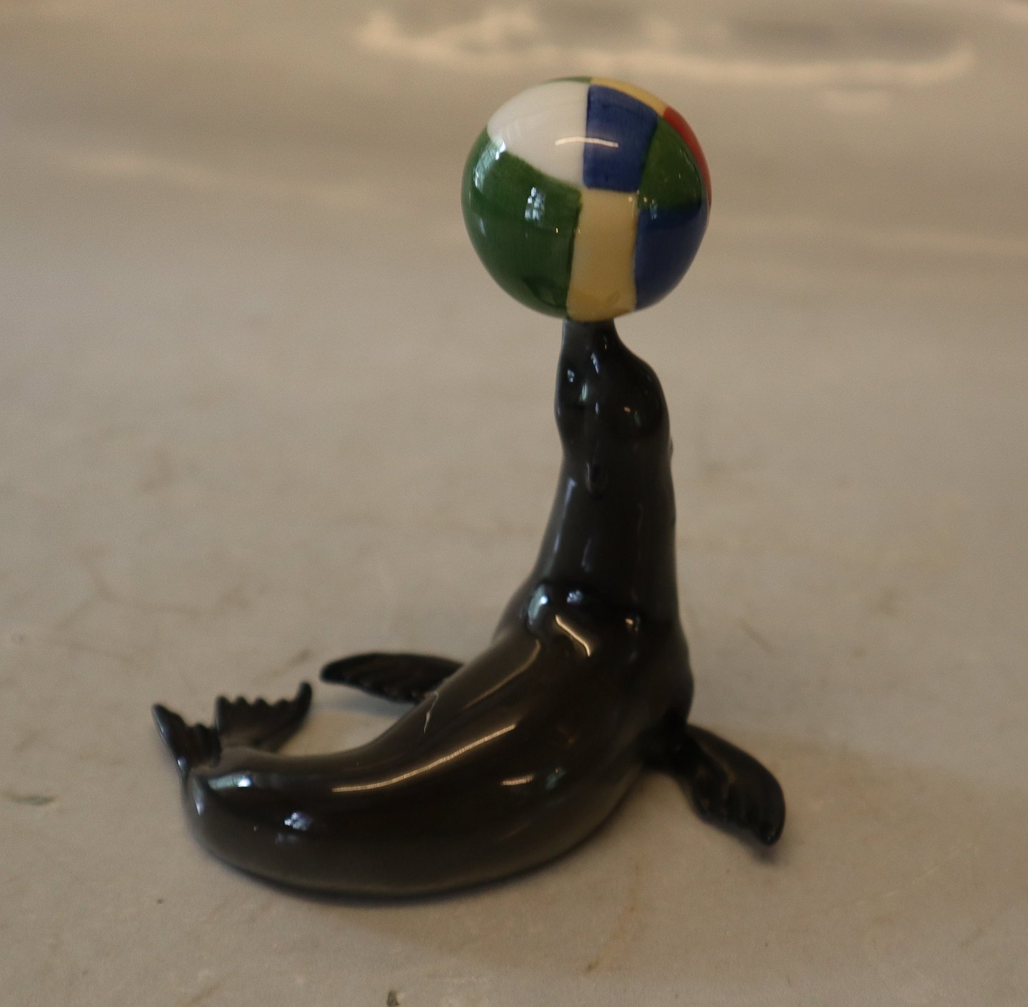 Beskrivelse: Kgl. 202 Søløve med bold 10 cm Mini Circus serien (1249202) Sven Vestergaard fra Royal Copenhagen I hel og fin stand