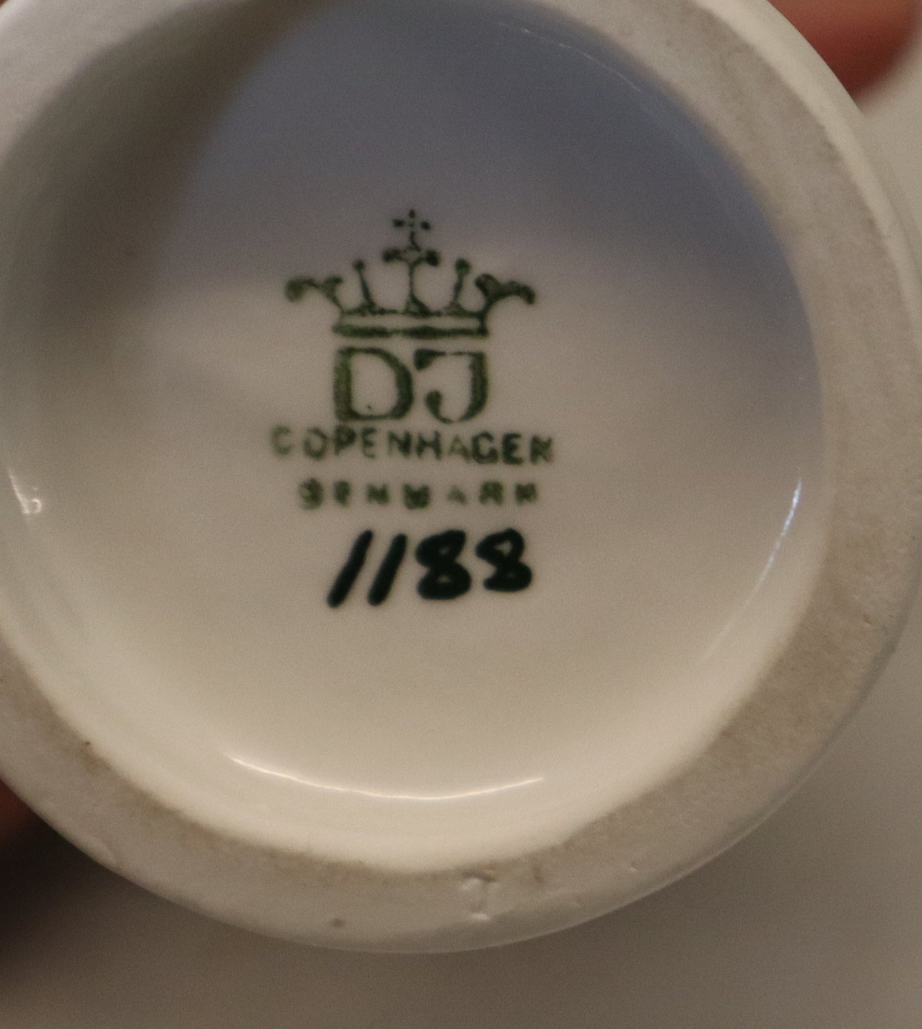 Beskrivelse: 1188 Snedker (DJ) 13,5 cm, hvid Dahl Jensen. Mærket med kongelig krone og DJ Copenhagen i hel og fin stand. Håndværkerfigur