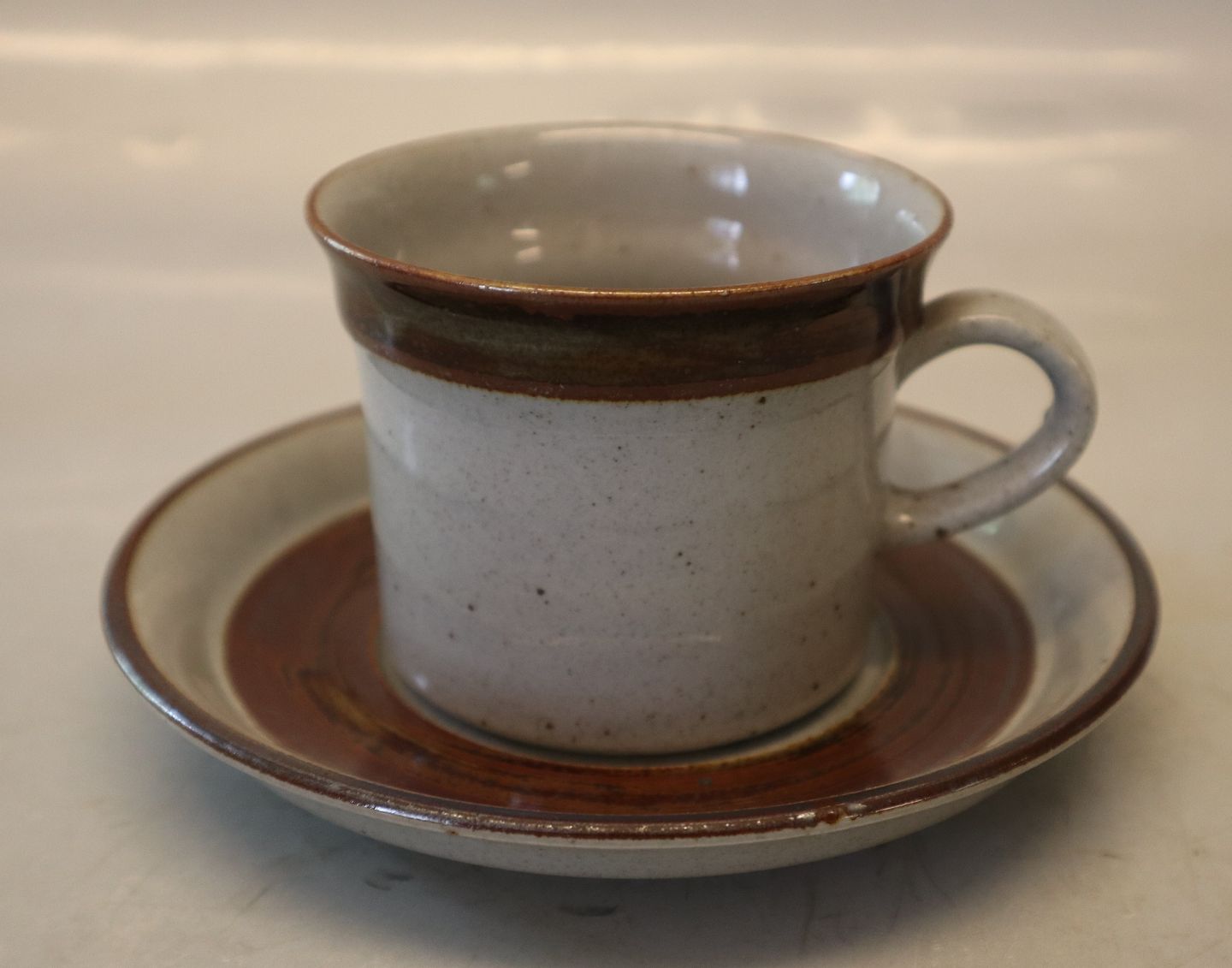Kaffekop 7 x 8,5 cm cm og underkop 15 cm INGRID stellet er magen til Christine, Knabstrup Keramik Testel - gråt med brun kant, Spisestel, Kaffestel