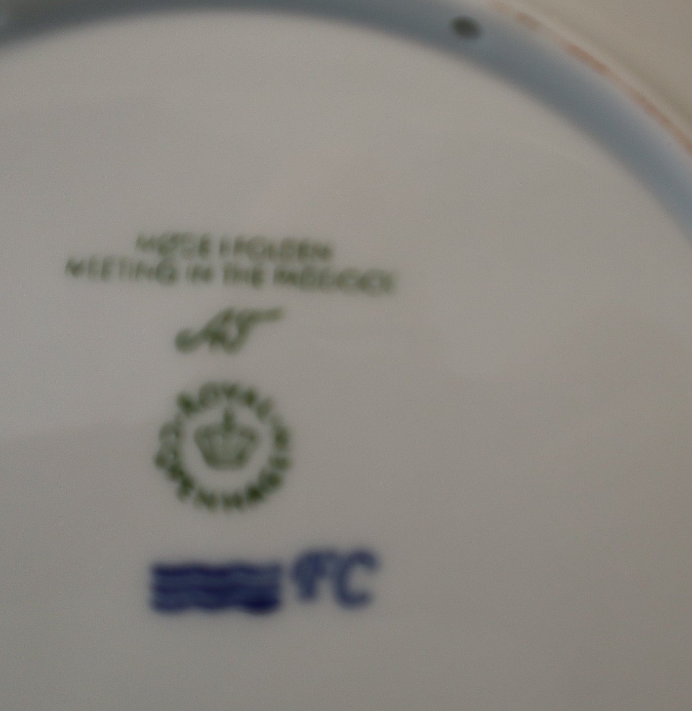 Beskrivelse: 2019 Møde i folden mellem hest og kanin 18 cm Design Allan Therkelsen Kgl. Juleplatte fra Royal Copenhagen I hel og fin stand