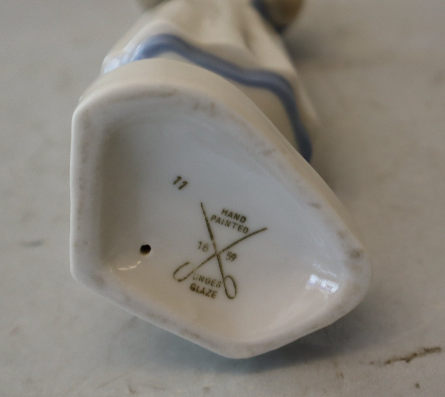 Beskrivelse: Sygeplejerske i blåt og hvidt 20 cm Tysk porcelæn 11 krydset saks 1859 Handpainted Underglaze