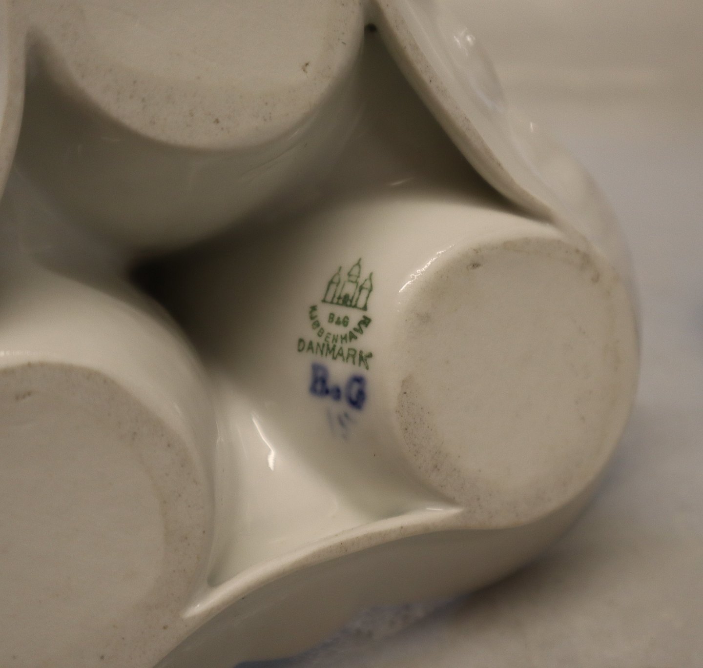 052 Trekantet plat de menage med søhestehank 13 x 16.5 cm Bing & Grøndahl Sommerfugl Musselmalet I fin og hel stand