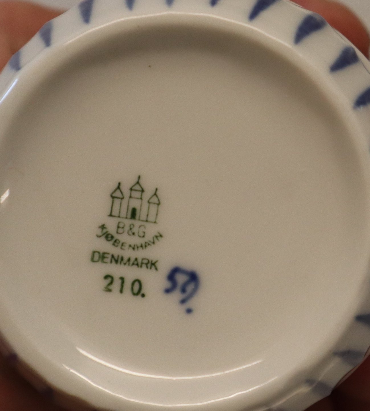 210 Stor sennepskrukke 8,5 cm (450) B&G Blåmalet Sommerfugl