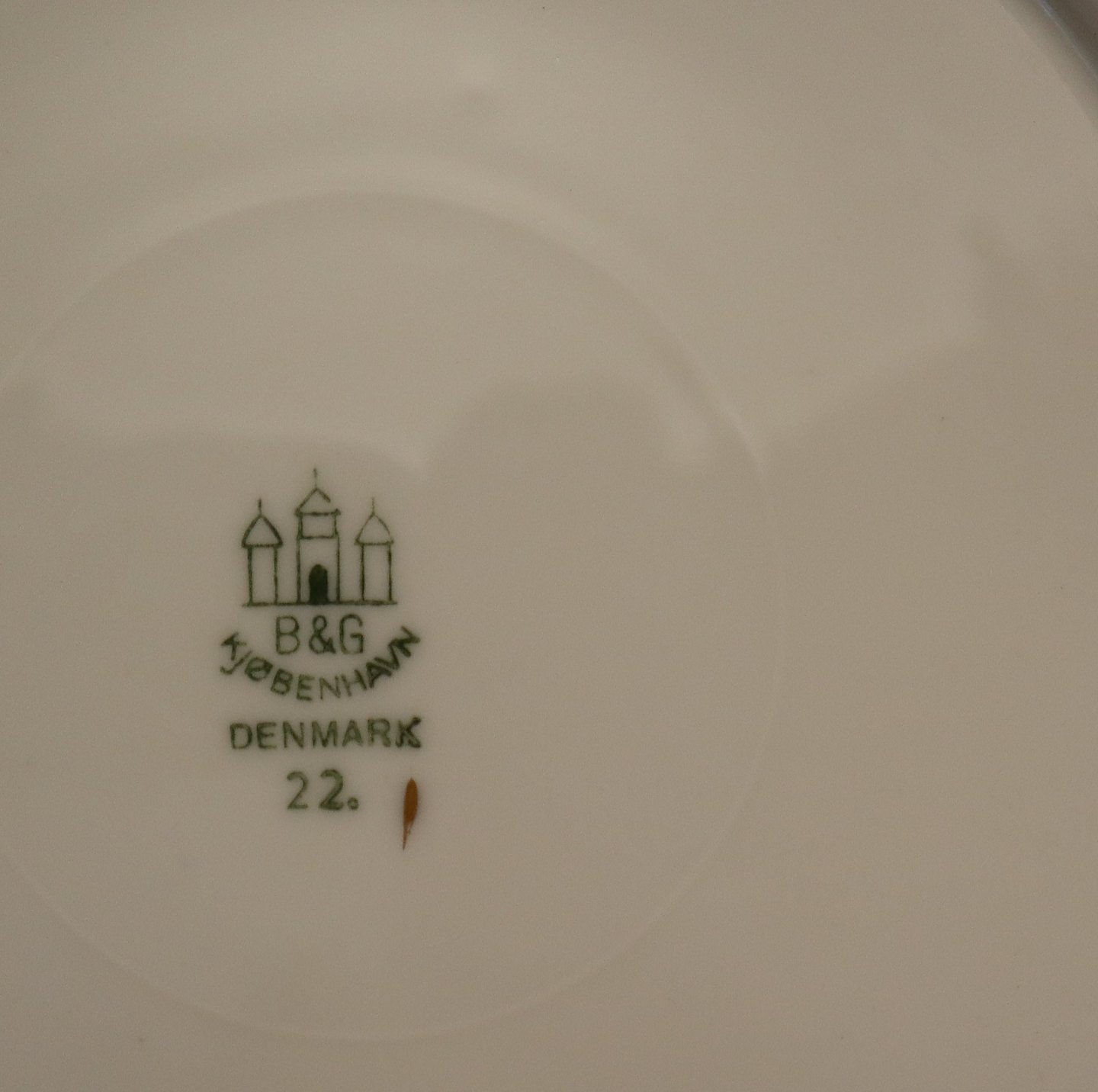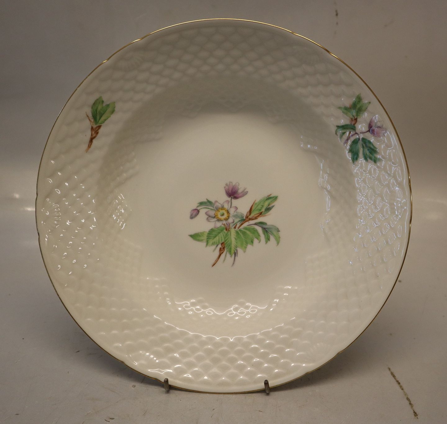 022 Stor dyb tallerken 24 cm (322) Frigga B&G Creme porcelæn, anemone, bøgeløv og guldkant, form 356 Frega, Fregga