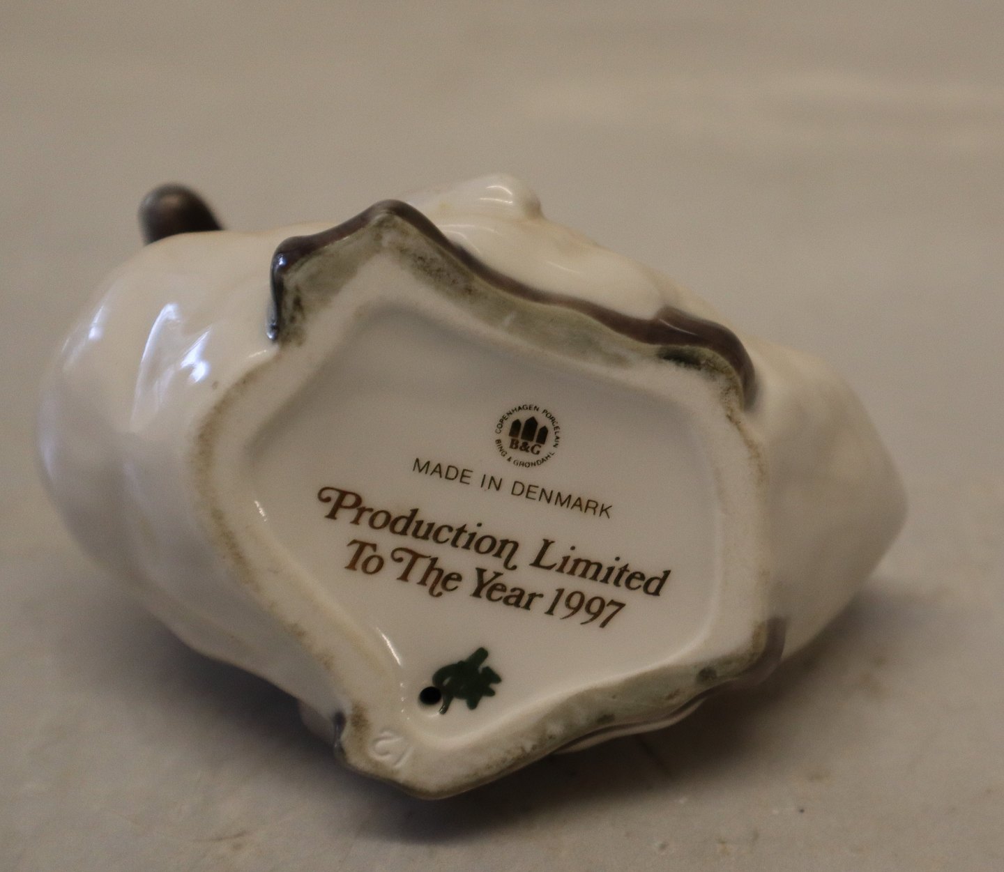 Beskrivelse: B&G 1997 Mors dags figur: Gæsling 7 x 9 cm Pia Langelund Bing & Grøndahl fuglefigur: Gæs eller gås og med en gase som far. I fin og hel stand.