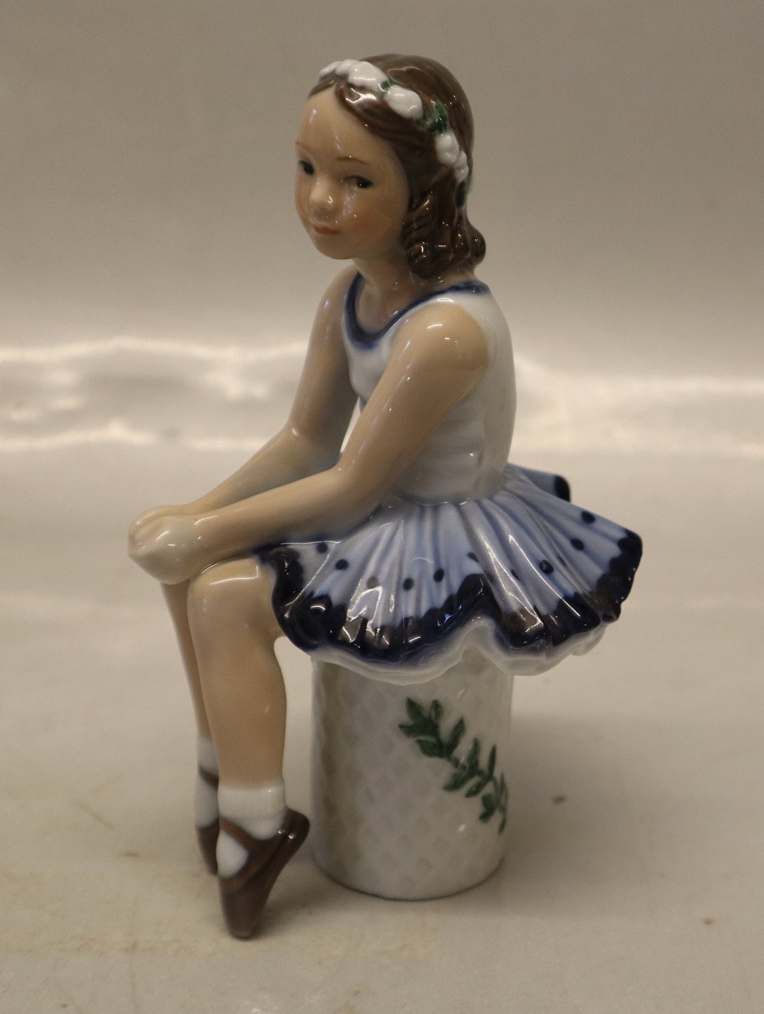 Beskrivelse: Kgl. Kongelig Dansk Pigefigur Lille Ballerina på stol 15 cm fra Royal Copenhagen I hel og fin stand