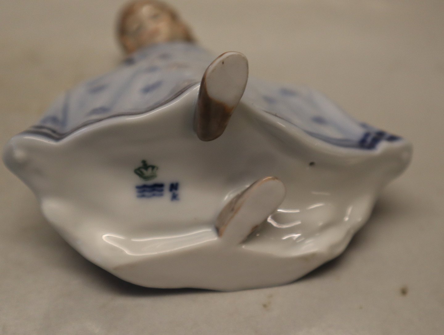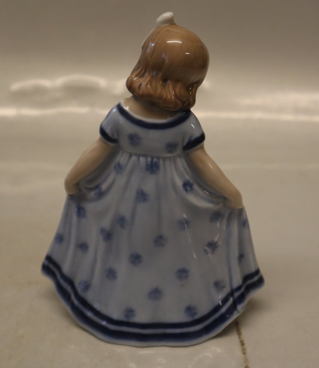 Beskrivelse: Sjælden version Måske prøvefigur 0084 Kgl. Mini Ballerina, blå polka dots14 cm (5021084) Version af dansende pige (2444) fra Royal Copenhagen I hel og fin stand