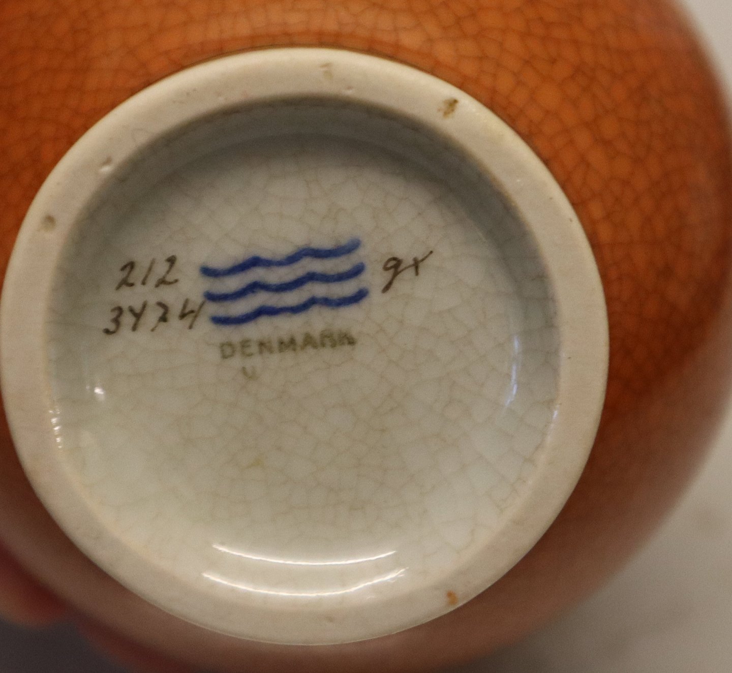 212-3474 Kgl. Orange og grå vase 13 cm Kongelig Dansk Craquelé, Craquele