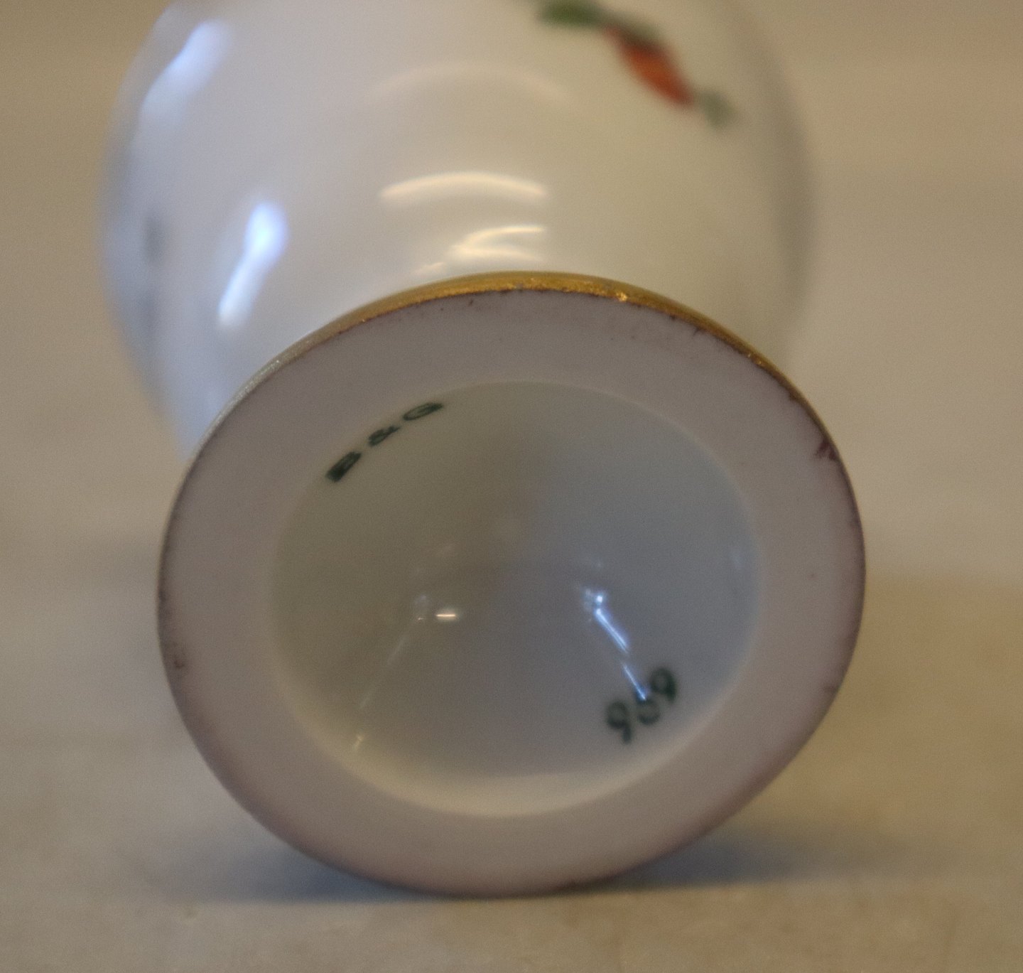 696 RC Æggebæger 6 cm Bing & Grøndahl Ægir spise- og kaffestel på skællede form 356: Hvidt porcelæn, tyttebær og vild stedmoderblomst (dekoration som Ymer og Rio)