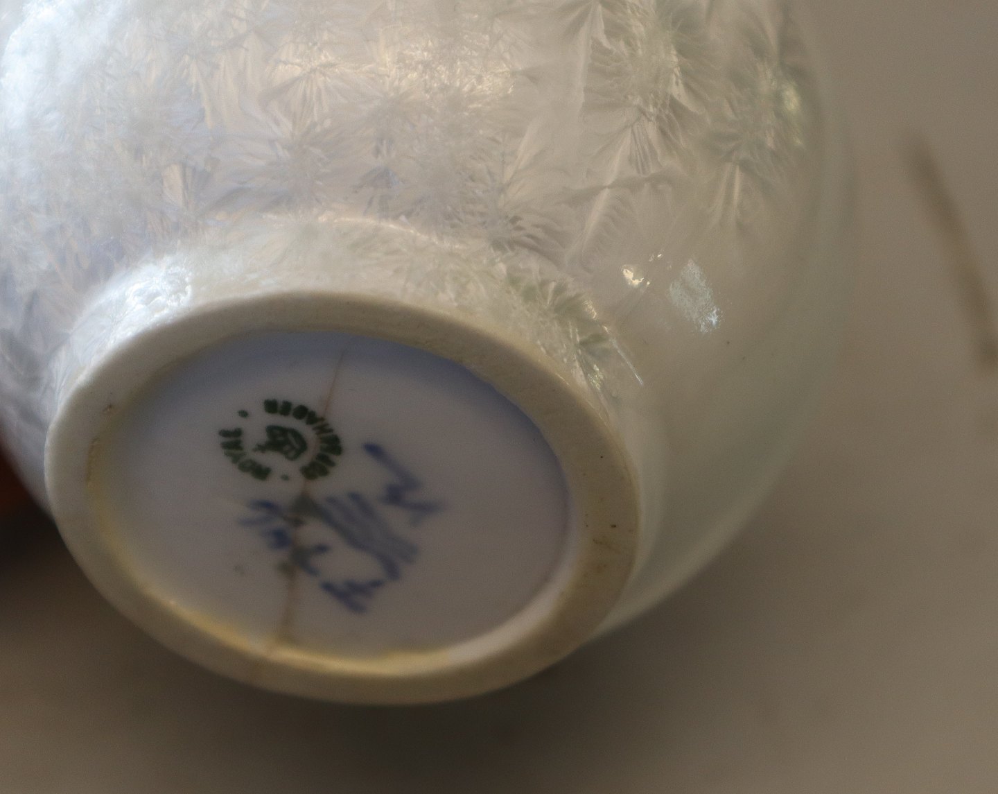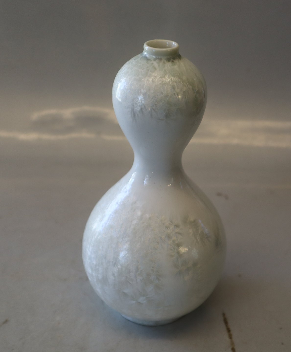 Kgl. F 746 Græskarformet (gourd) vase med krystal glasur 17.8 cm Valdemar Engelhart Kongelig Dansk porcelæn