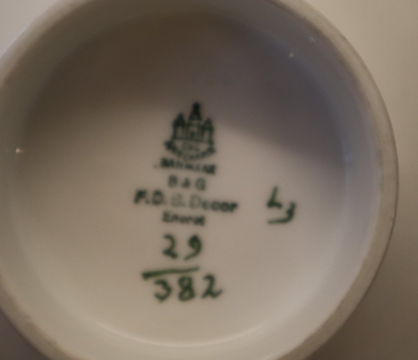 Beskrivelse: B&G 29-382 Art Nouveau skål med rose 5.5 x 16.5 cm FDB decor Eneret Bing & Grøndahl I fin og hel stand.