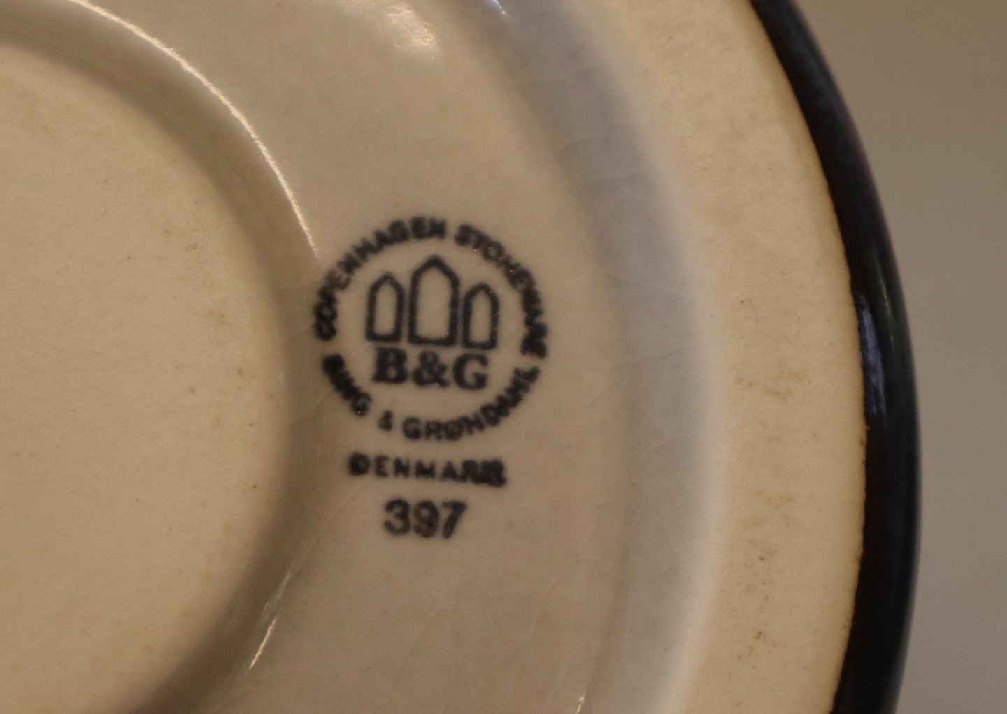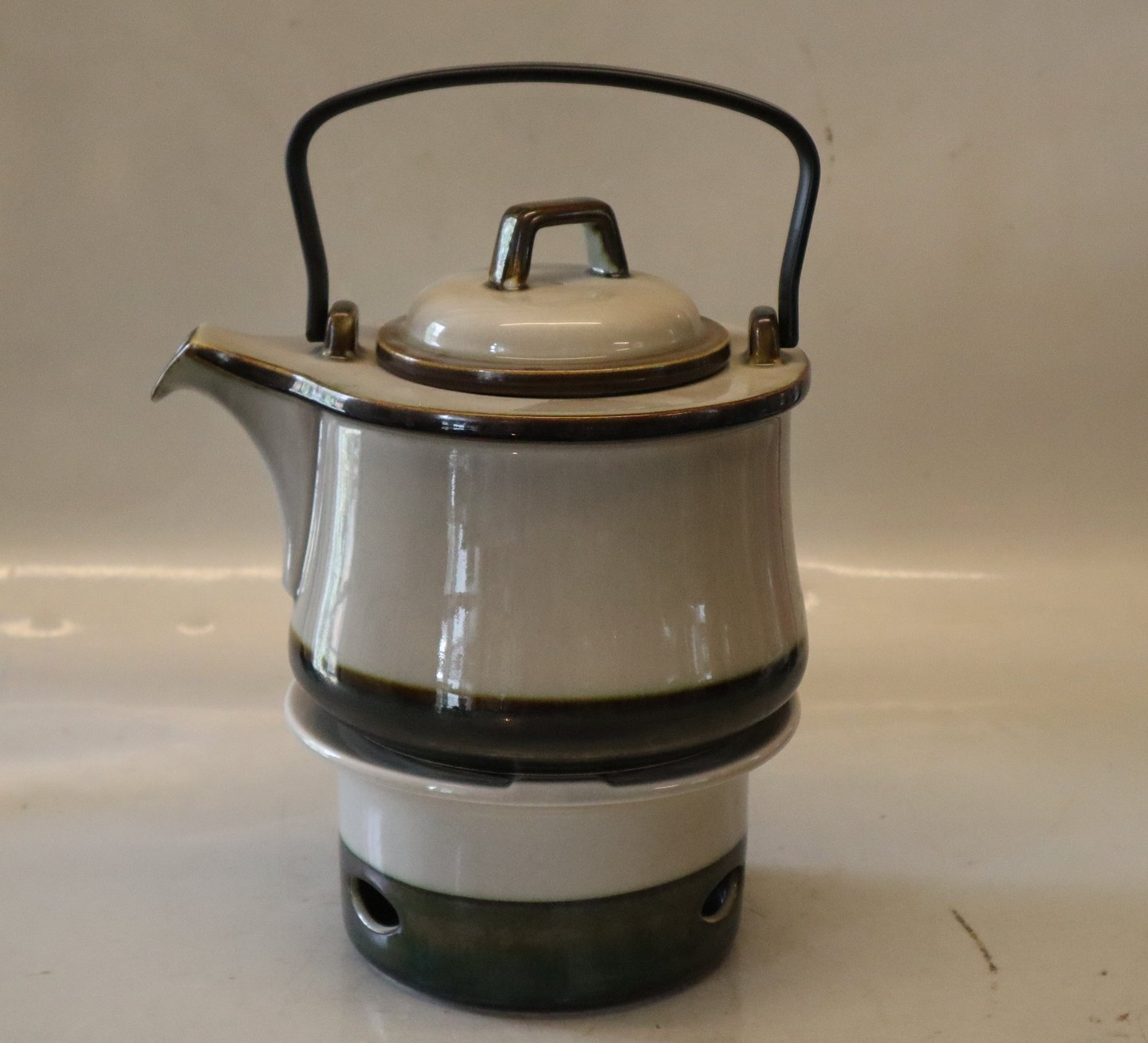 I hel stand med næsten usynlig krakelering i glasuren Bing & Groendahl. Stemplet Bing & Grondahl Copenhagen Stoneware Tevarmer til tekande
