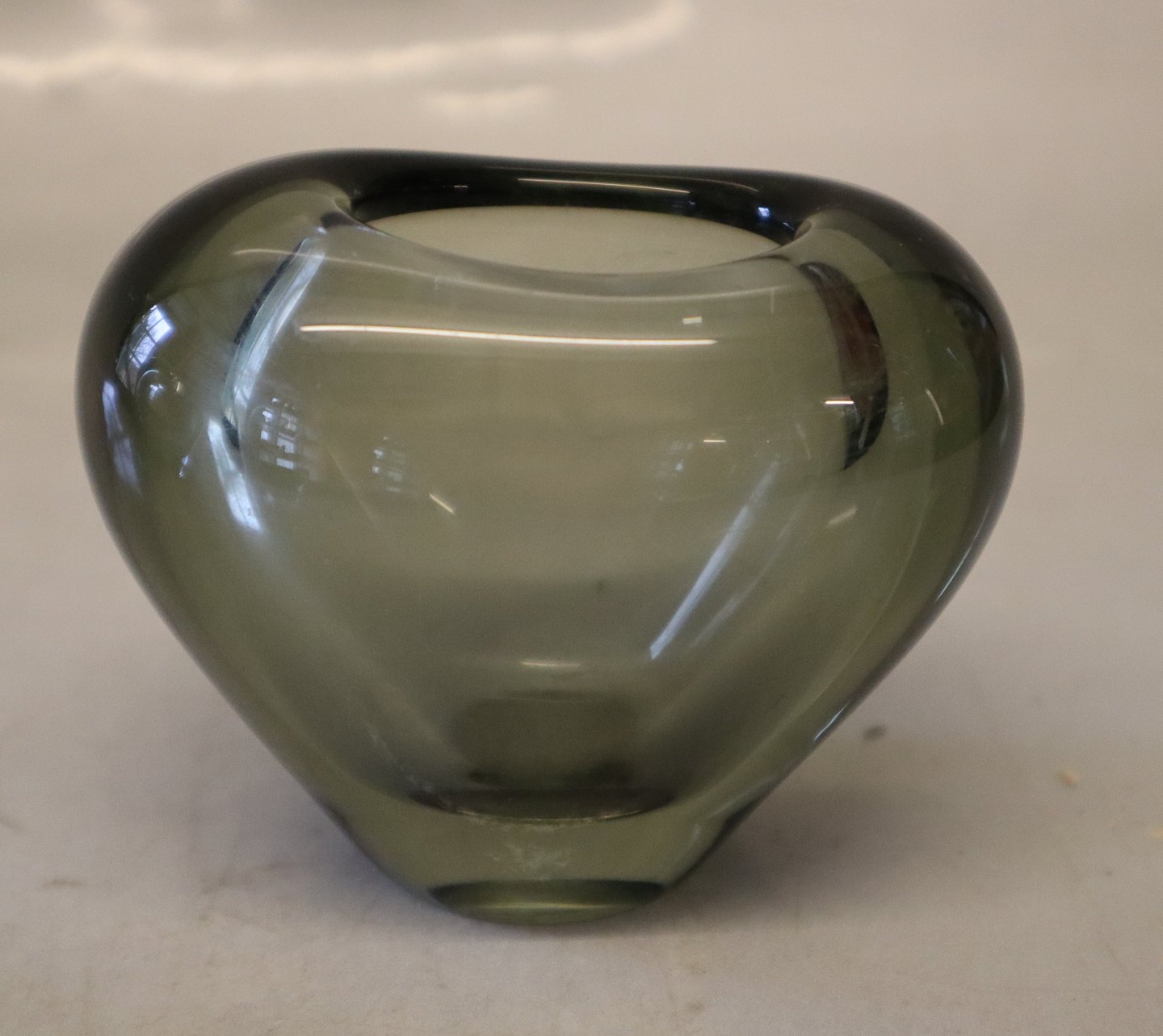 Beskrivelse: Hjertevase smoke Menuet 6.5 x 8.5 cm (Evergreen) (PL 15032) Kr 275