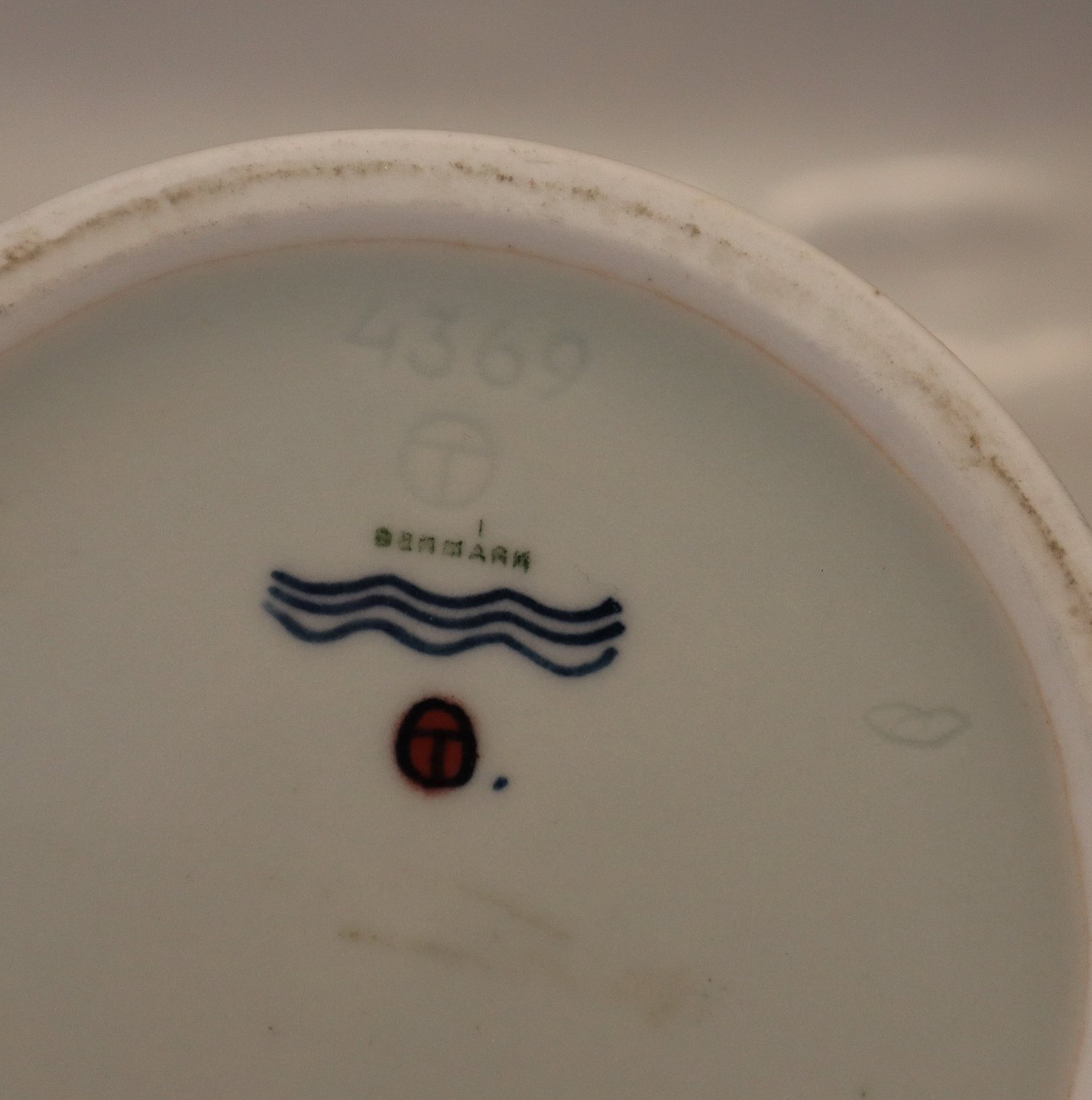 4369 Kgl. Dåse med låg 15.5 x ca 11 cm Signeret TO Thorkild Olsen Kongelig Dansk Stentøj