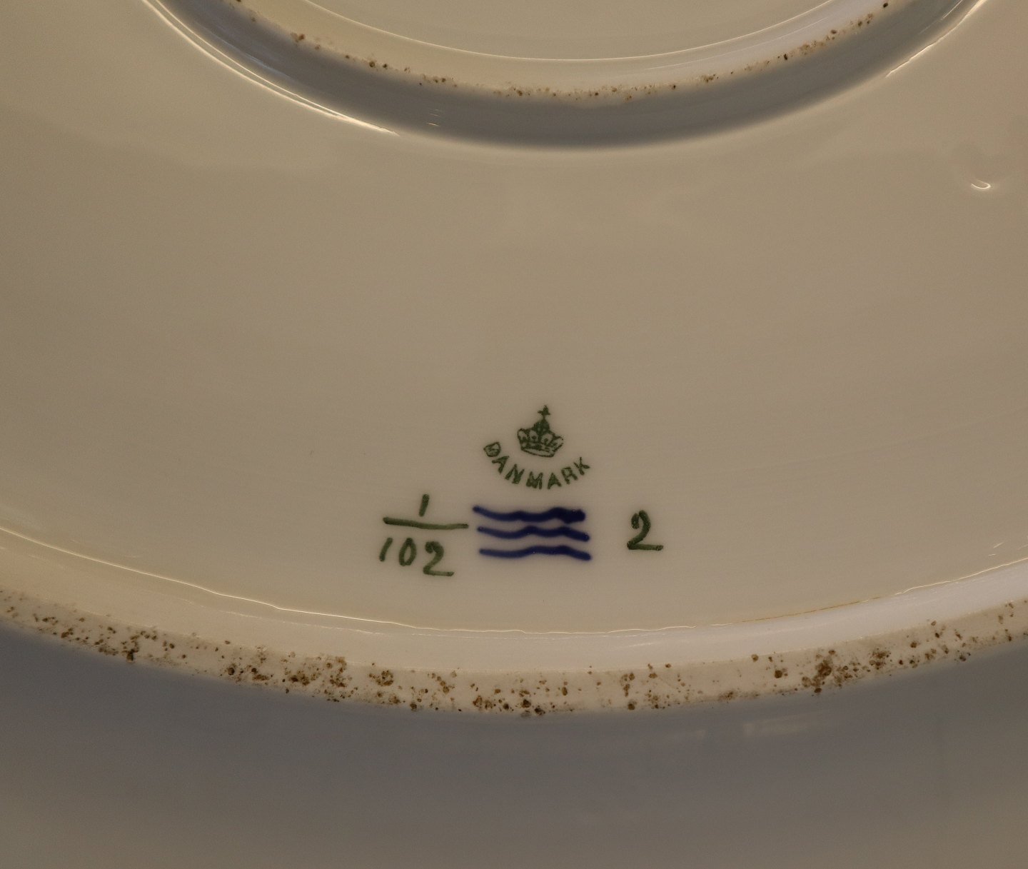 102-1 Fad, bred ovalt 37 x 48 cm Pre 1898 Kongelig Dansk Porcelæn Musselmalet