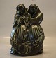 1605 Kgl. To Munke med fisk 22 x 16 cm Signeret Georg Thylstrup 1913 Kongelig Dansk Stentøj
