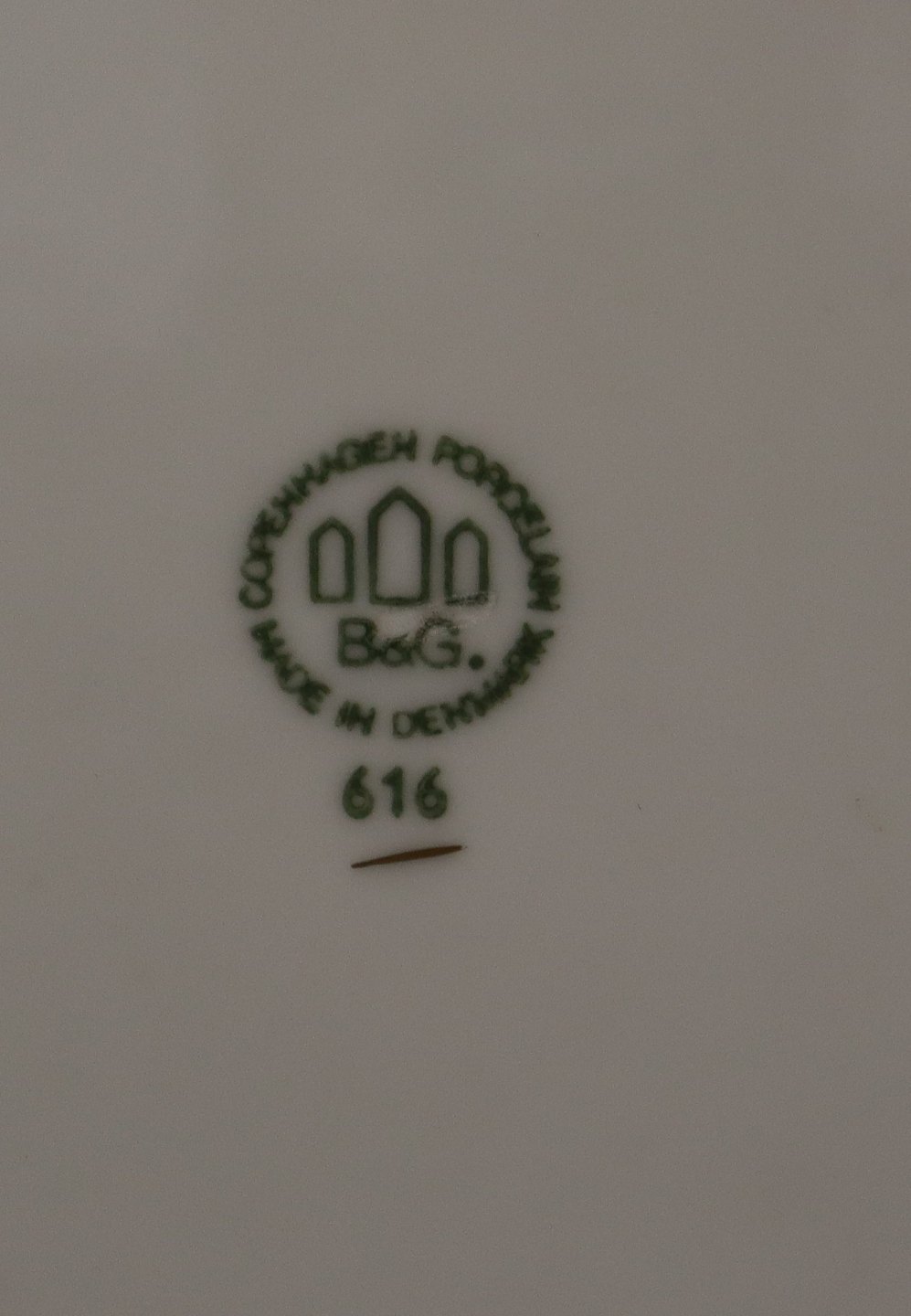 Antik 616 Kagetallerken 17 cm bred poler guldkant Hvidt porcelæn med bred guldkant på antik form Bing & Grøndahl