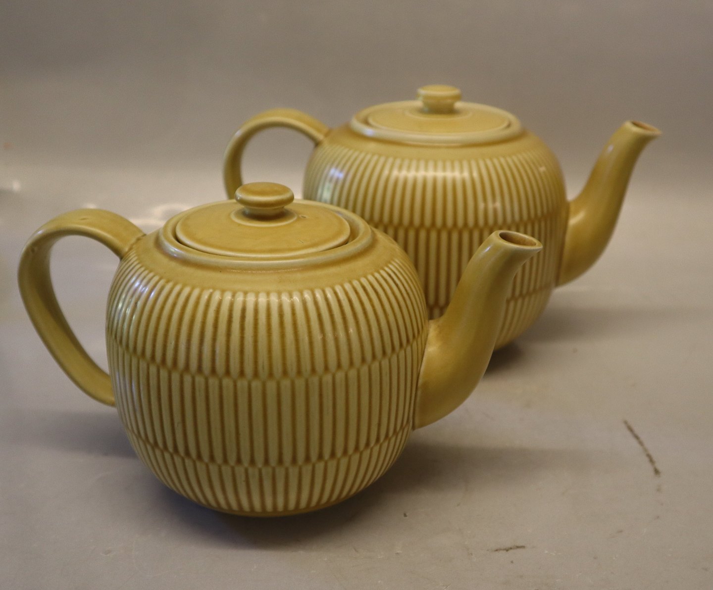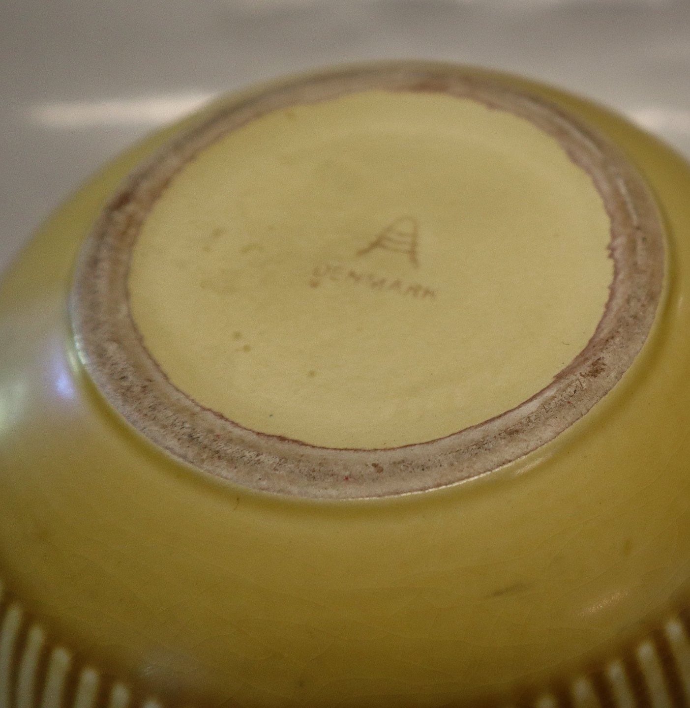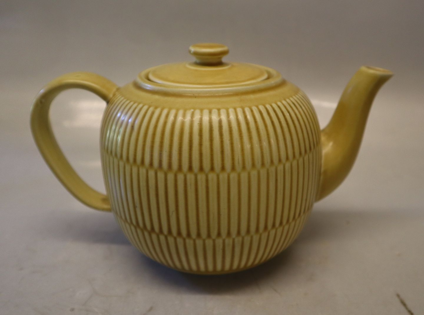 Beskrivelse: Lille version 2261 Lille tekande 14 x 22 cm Royal Copenhagen Aluminia fajance Tekander Aluminia Gul Riflet Tepotte i Marselis Stil