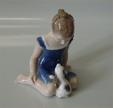 : Nr. 97 Lyngby Pige med hund "Gode venner" 14 cm
