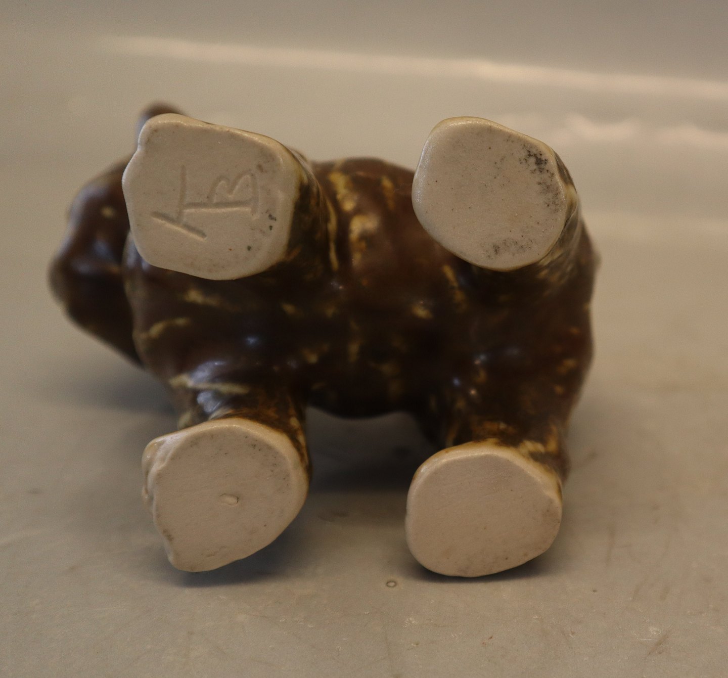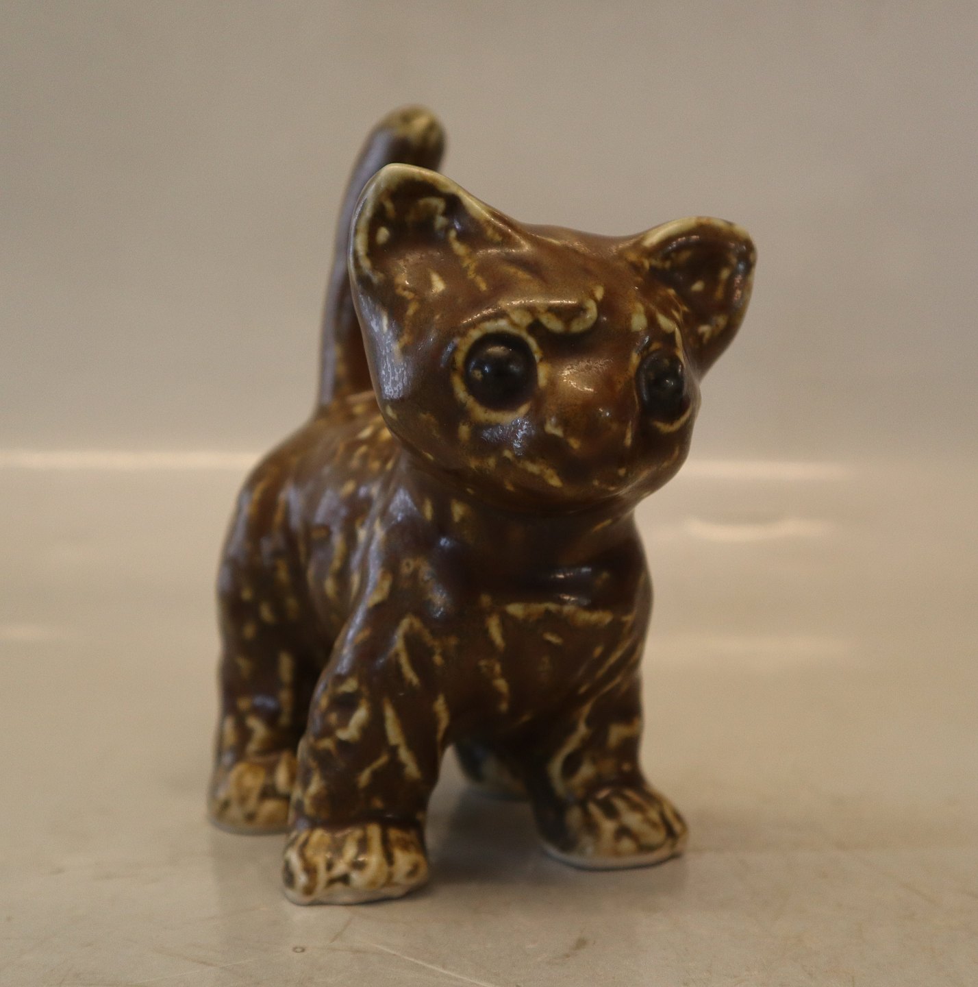 Beskrivelse: Knud Basse brun glaseret kat 14.5 x 13 cm Signeret KB