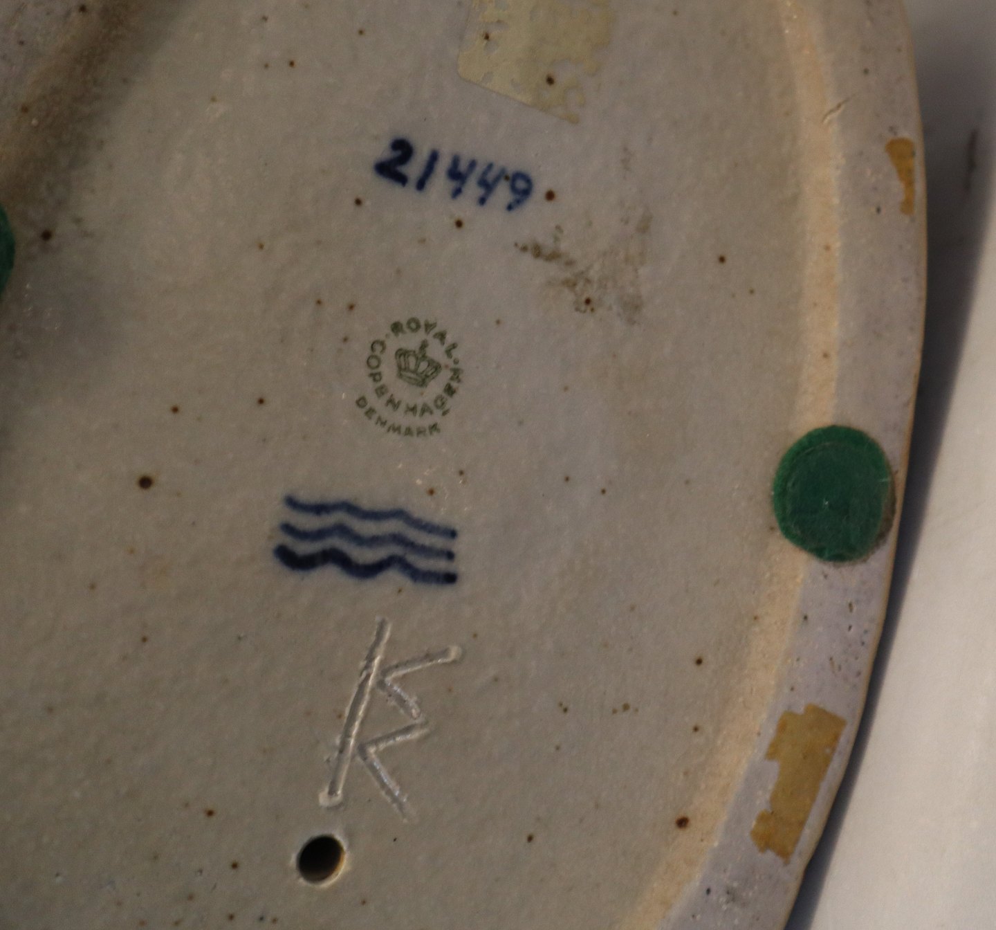 Kongelig Dansk Stentøj 21449 Kgl. Rådyrgruppe ca 34 x 25 cm, KK april 1957