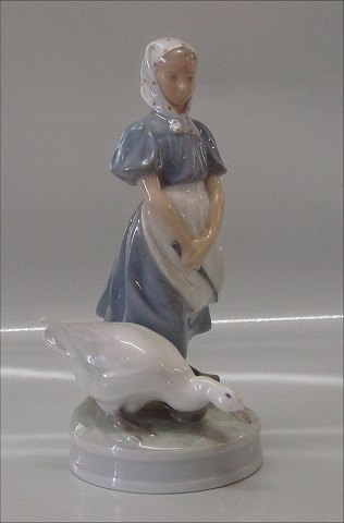 Beskrivelse: Kgl. figur 0527 RC Stor gåsepige Design: Christian Thomsen 24 cm 2. sortering. I hel og pæn stand Bondepige med fuglefigur: gås