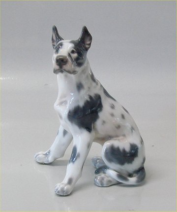 Beskrivelse: Dahl Jensen hund 1128 Great Dane, lille udgave (DJ) 13 cm 2. sort og i fin stand