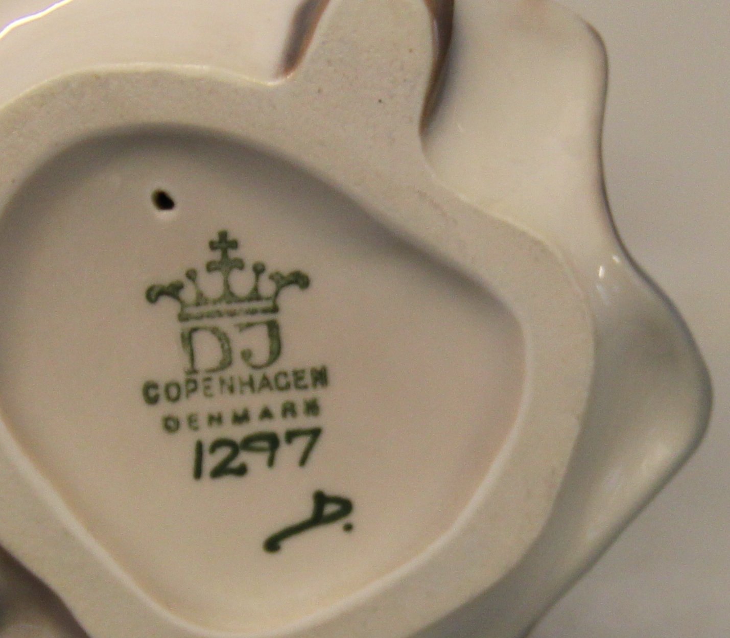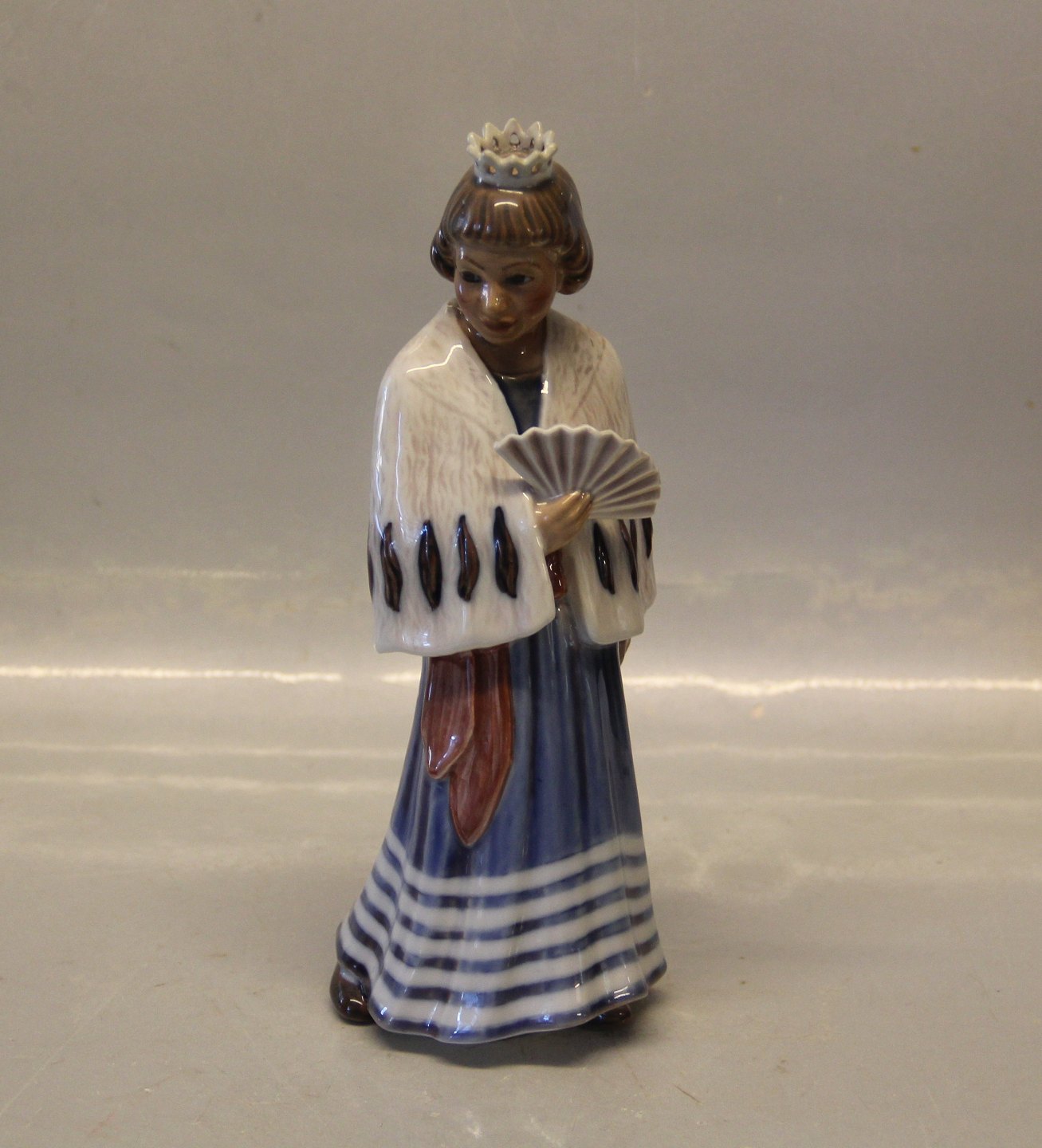 Beskrivelse: Dahl-Jensen 1297 Princesse med hvid vifte (DJ) 20.5 cm 1. i hel og fin stand Stemplet med Den Kongelige Krone og DJ Copenhagen