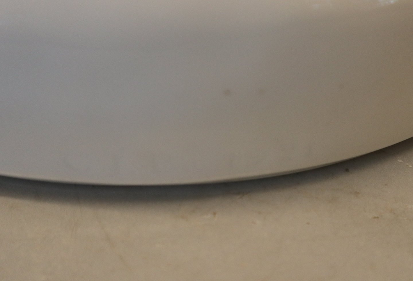 Beskrivelse: Kgl. Nordpolen fad med en isbjørn 32 x 20 cm Carl Johan Bonnesen 1921. efter ide af Arnold Krogh Krystal isglasur fra Royal Copenhagen I hel og fin stand Helt hvid flydeglasur Søren Berg 16-08-1928 Crystalline