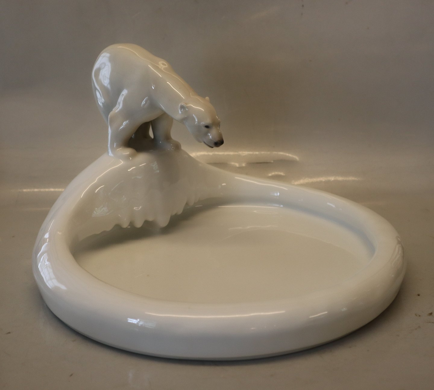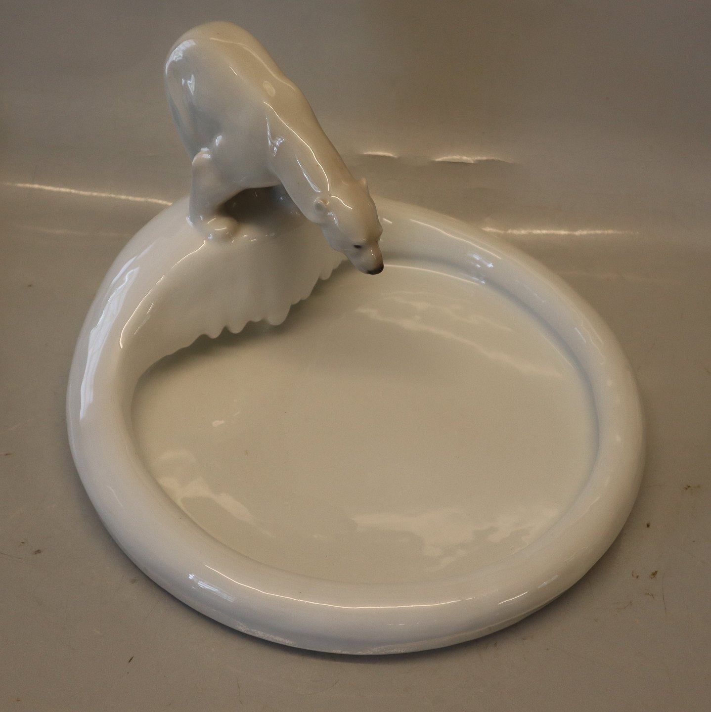 Kongelig Dansk Nordpolen fad med en isbjørn 32 x 20 cm Carl Johan Bonnesen 1921. Krystal isglassur Søren Berg 16-08-1928