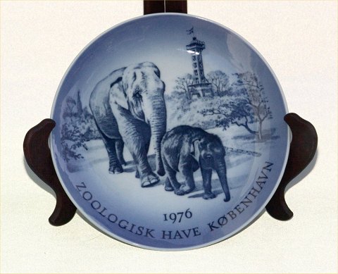 Beskrivelse: 1976 Kgl. Zoo platte Elefant med unge 18 cm Zoologisk Have København 1976 fra Royal Copenhagen I hel og fin stand