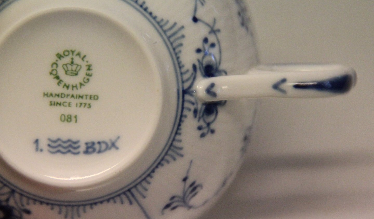 525-1 Tekop, medium & underkop (080, 081, 082) Kgl. Porcelæn Musselmalet Halvblonde