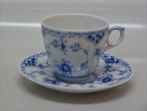 Kgl. Halvblonde Musselmalede Kaffekopper 719-1 Kaffekop 6 x 7,2 cm 069 og underkop 12,7 cm (070) (068)