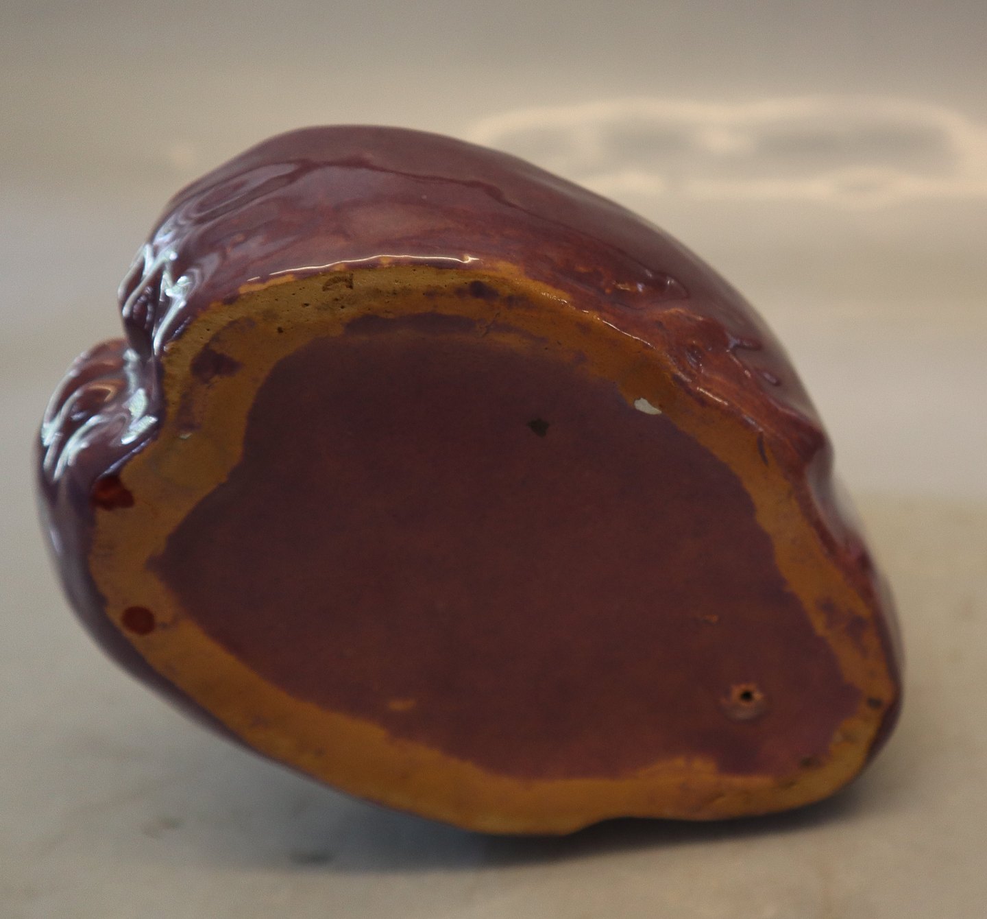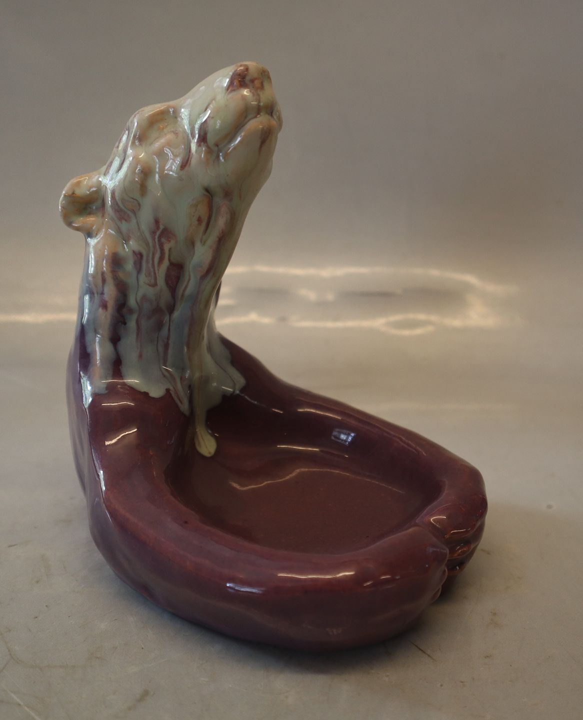 Beskrivelse: 1 stk på lager MA.S Majolika Bjørneskål 15.5 x 14 cm Pastel og lila flydeglasur
