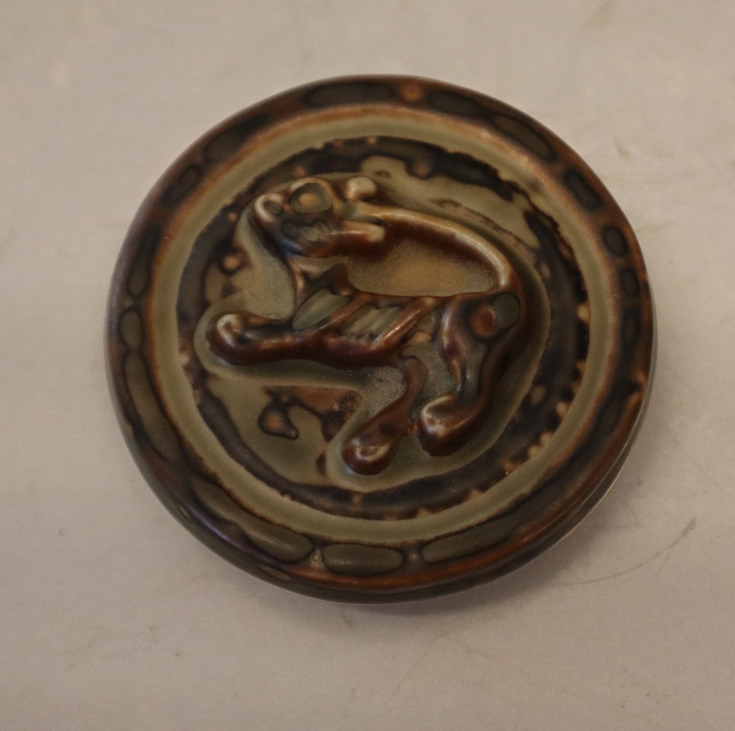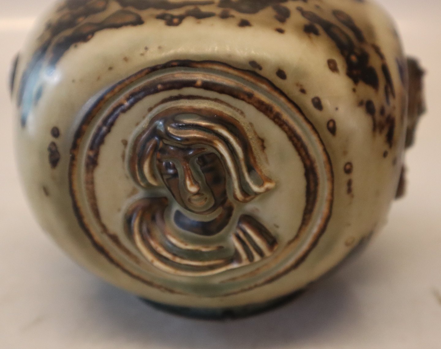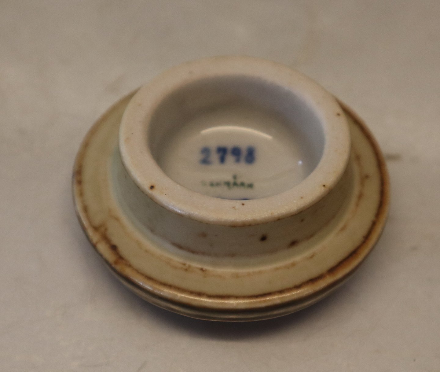 2798 Kgl. Firkantet Jais Nielsen vase med låg og relief dekoration Sung Glasur 14 x 14