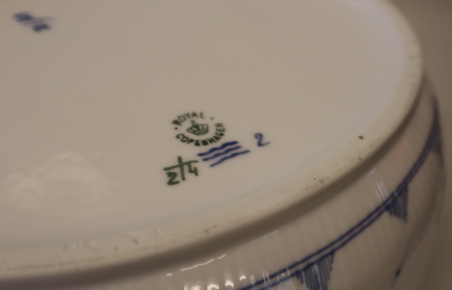214-1 Terrin, oval, 12 pers. 19 x 20.5 x 32.5 cm Kongelig Dansk Porcelæn Musselmalet