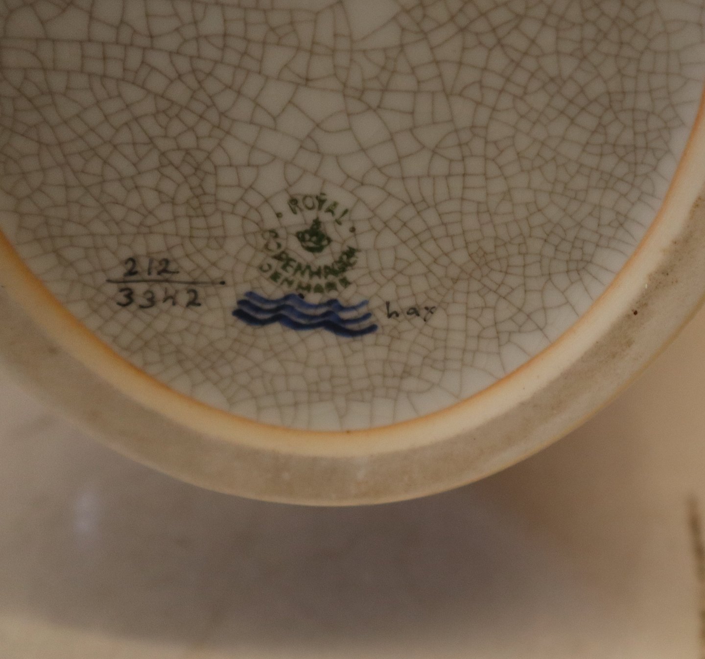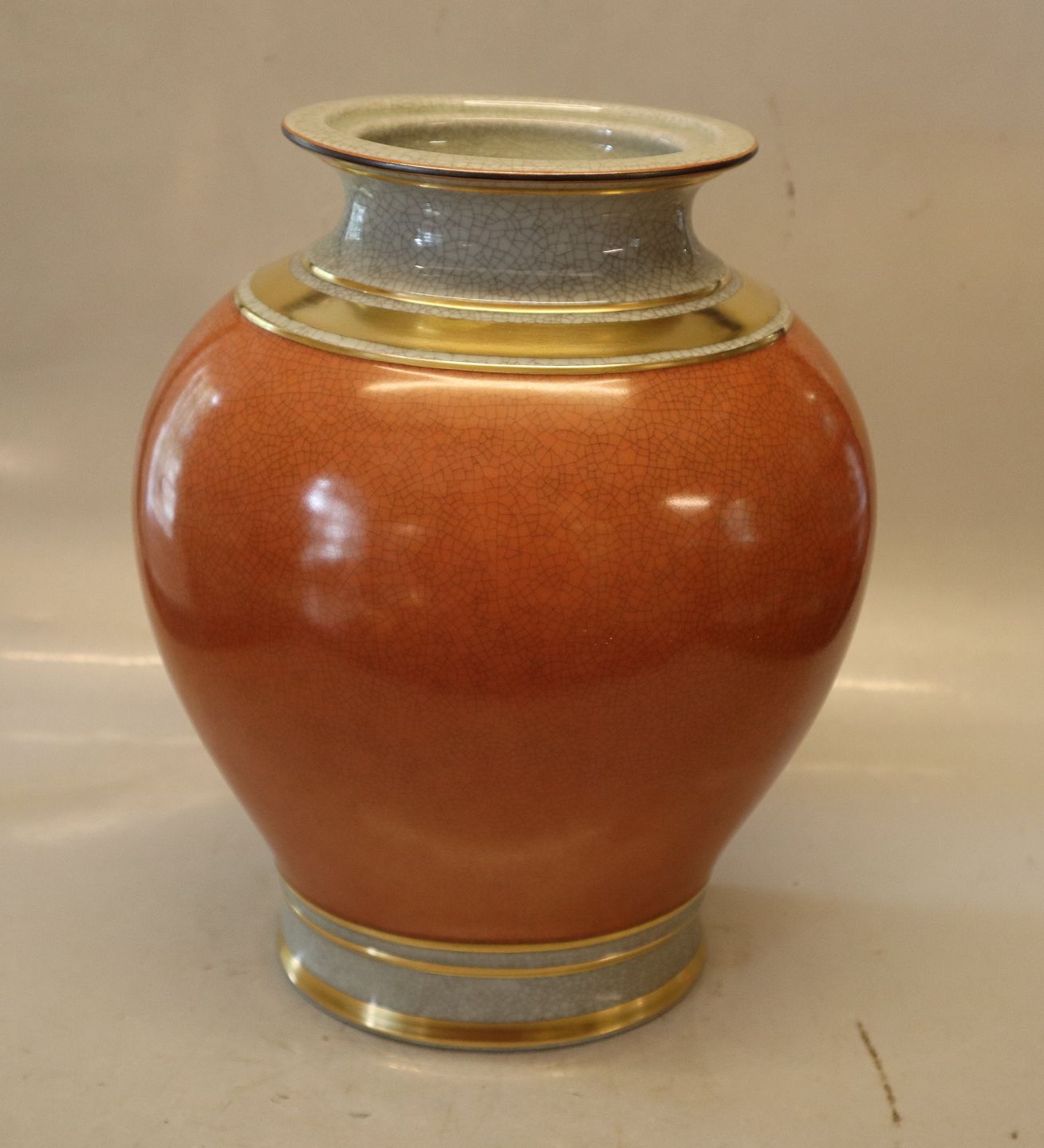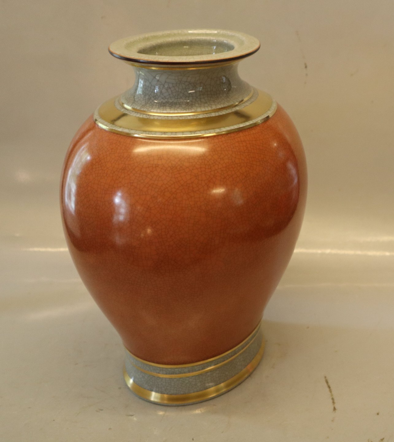 212-3342 Kgl. Orange på gråt med guld 29 x ca 23 x 18 cm Kongelig Dansk Craquelé, Craquele