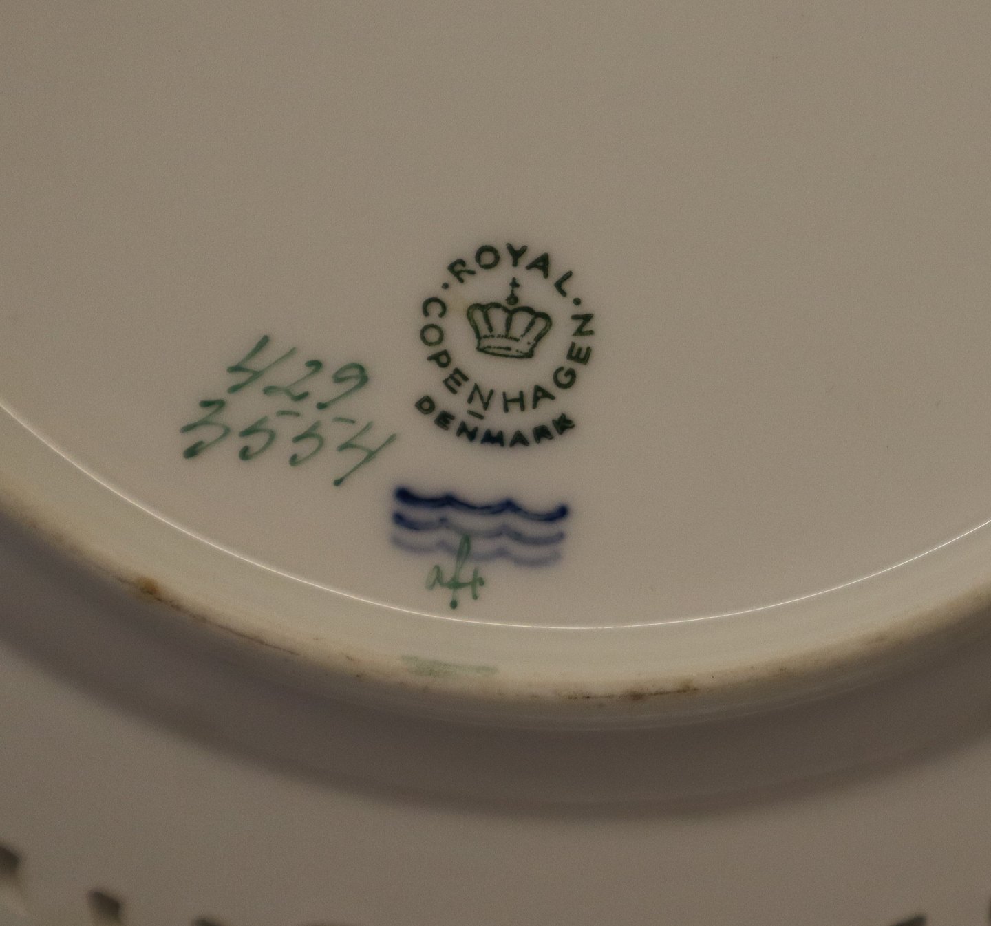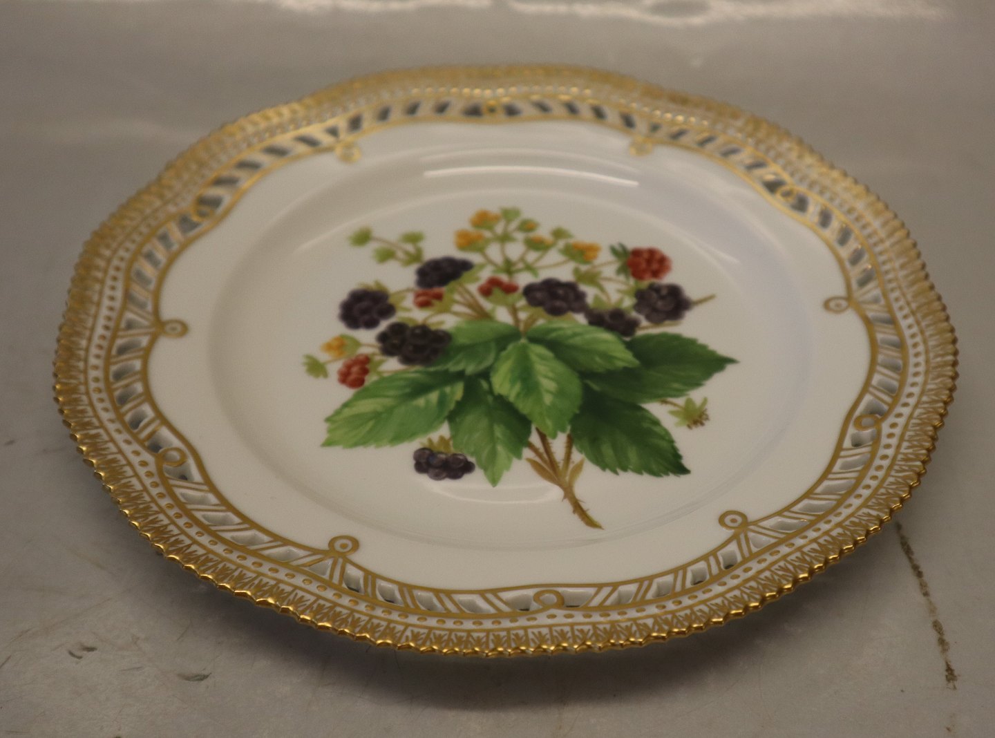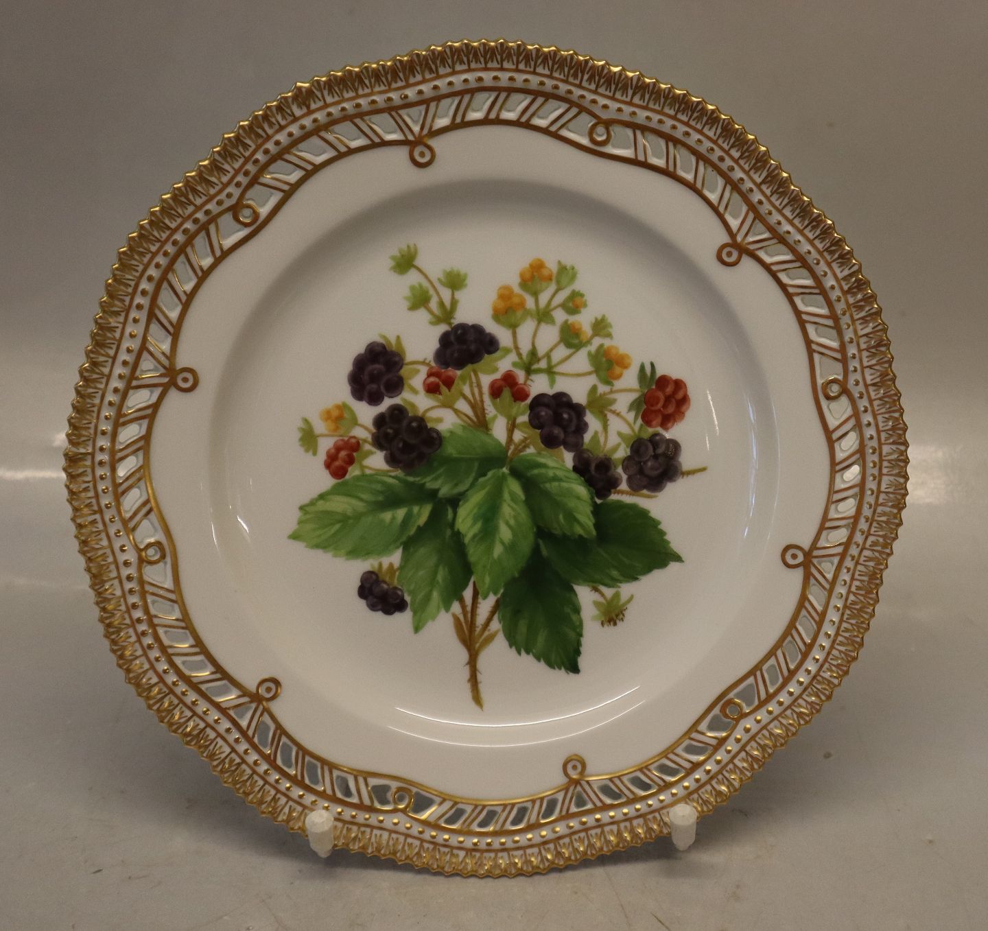 429-3554 Frugttallerken Brombær Fad til lille rund frugtkurv, flad tallerken med gennemskåret bort 23 cm Kongelig Dansk Porcelæn Flora Danica