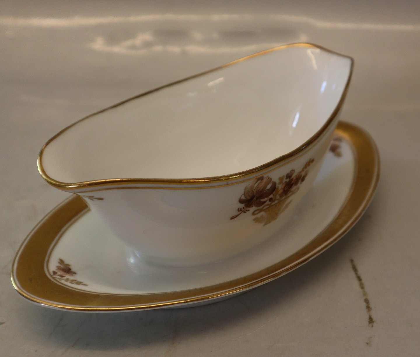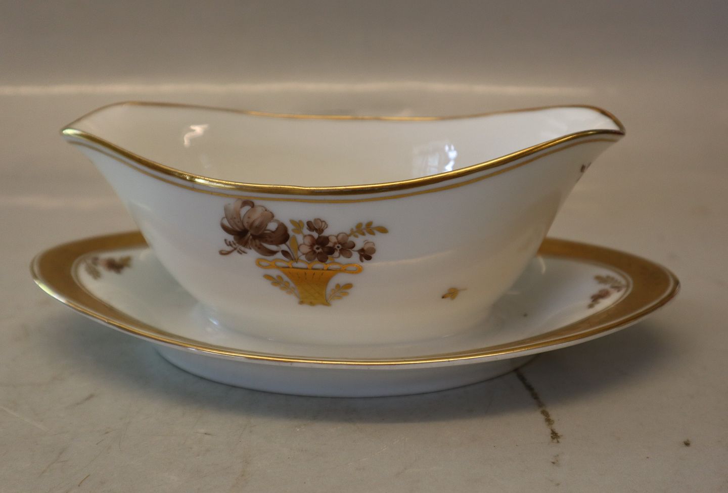 Kgl. 9044-595 eller 9344-595 Sovseskål 23 cm Royal Copenhagen Guld dekoration på hvidt porcelæn 1927. I hel og fin brugt stand Golden Basket Sauce