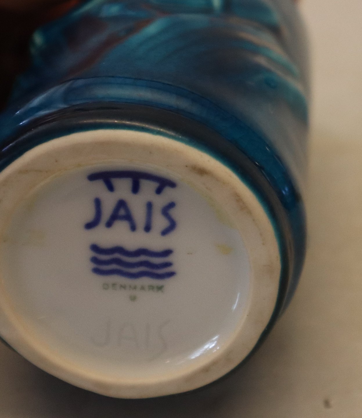 Beskrivelse: RC Turkis flaske 14 cm med releif af høstfolk Signeret Jais Royal Copenhagen stentøj I fin og hel stand
