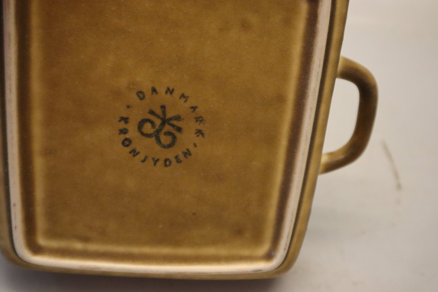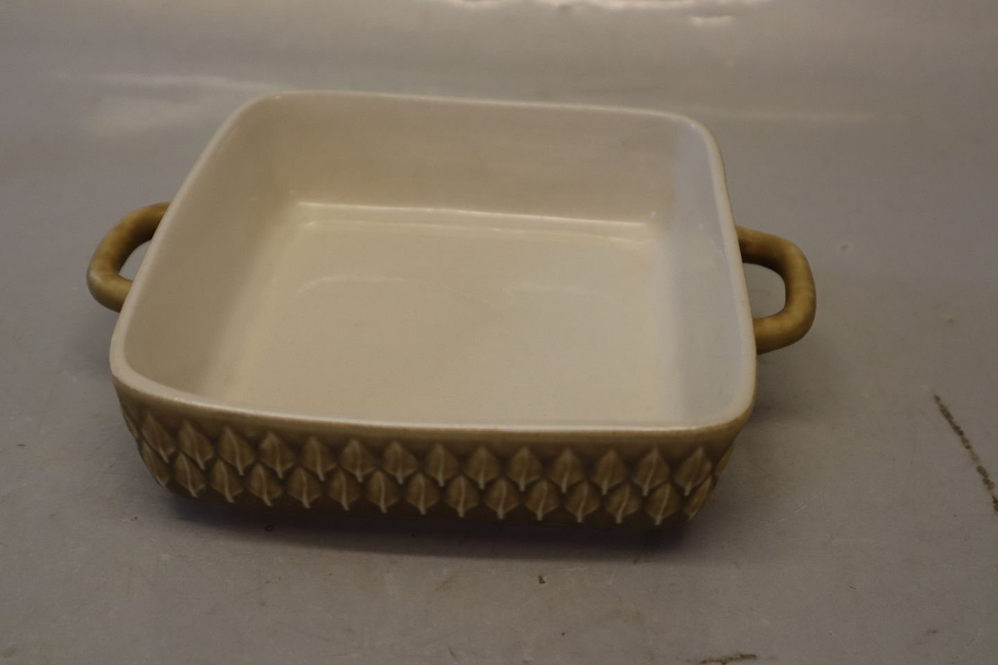 Firkantet fad med hanke 17 x 20 cm Bing & Grøndahl Relief Quistgaard for B&G / Nissen Kronjyden Stoneware