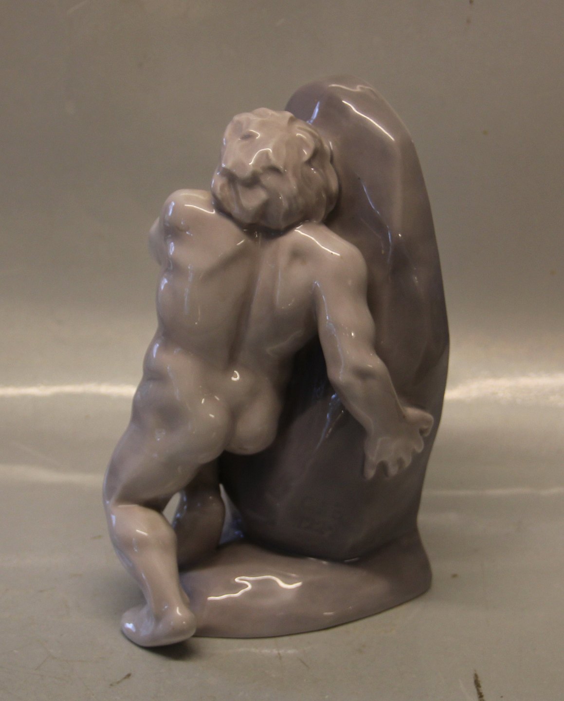 Beskrivelse: Bing & Grøndahl figur B&G 2100 Bogstøtte Sisifos 22 cm . I fin og hel stand Carl Johan Bonnesen Stemplet CJB