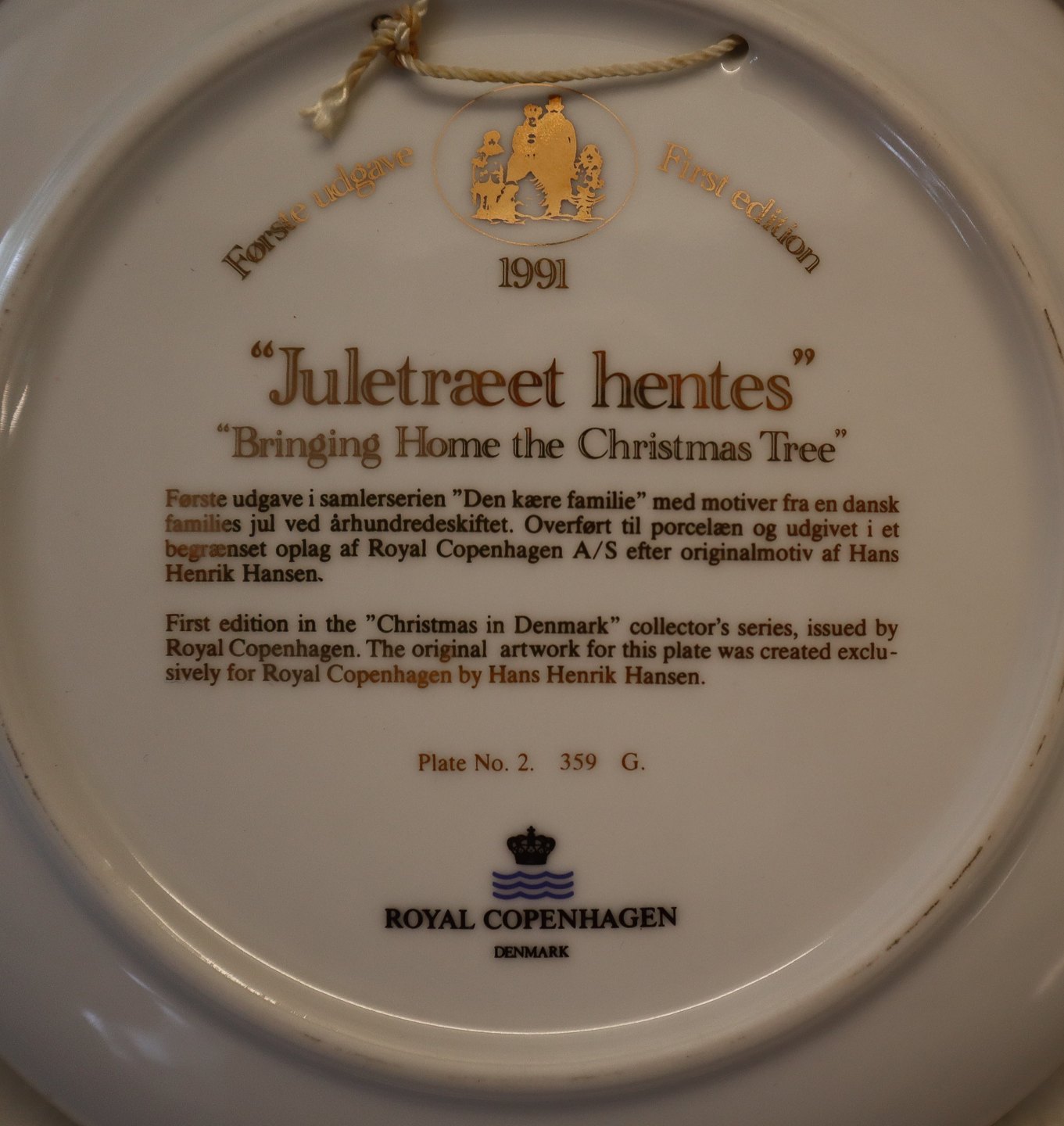 Kongelig Dansk 1991 Den kære familie platte 21.2 cm Juletræet hentes Hans Henrik Hansen HHH
